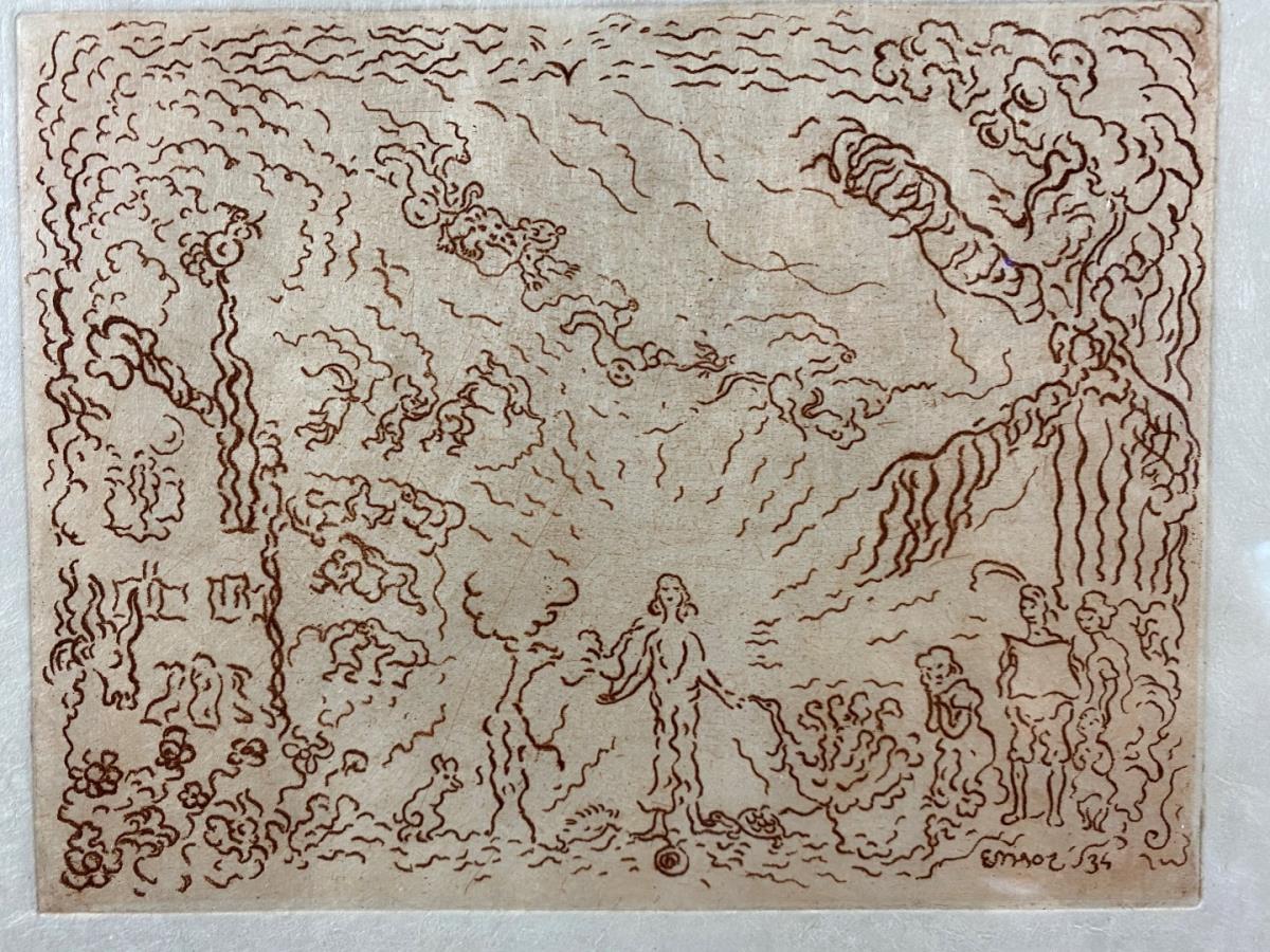 Ets door James Ensor, Gesigneerd in de plaat 'Ensor', geschatte waarde: 4250, afm plm: