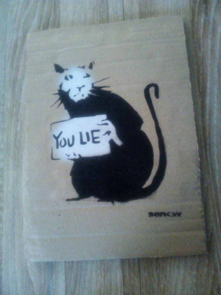 Banksy Dismaland Rat "Karton Dismaland (tekst op achterzijde) Genummerd 27/50 Geschatte waarde: € 1.500 // Verzendingskosten : 20 euro België / Europa : 30 euro.