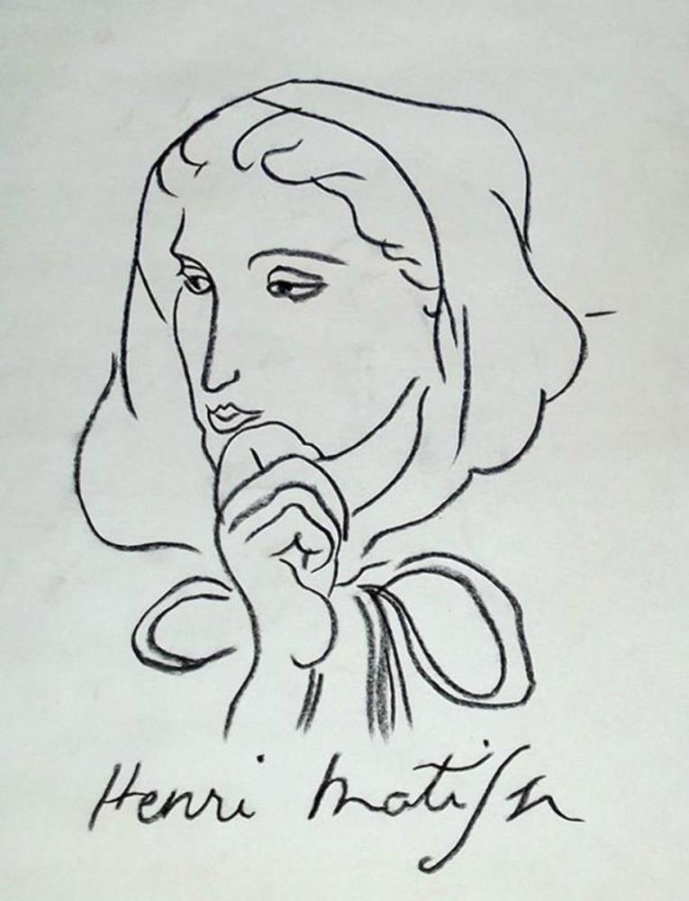 Henri Matisse rough charcoil study ‘Woman with a hood’