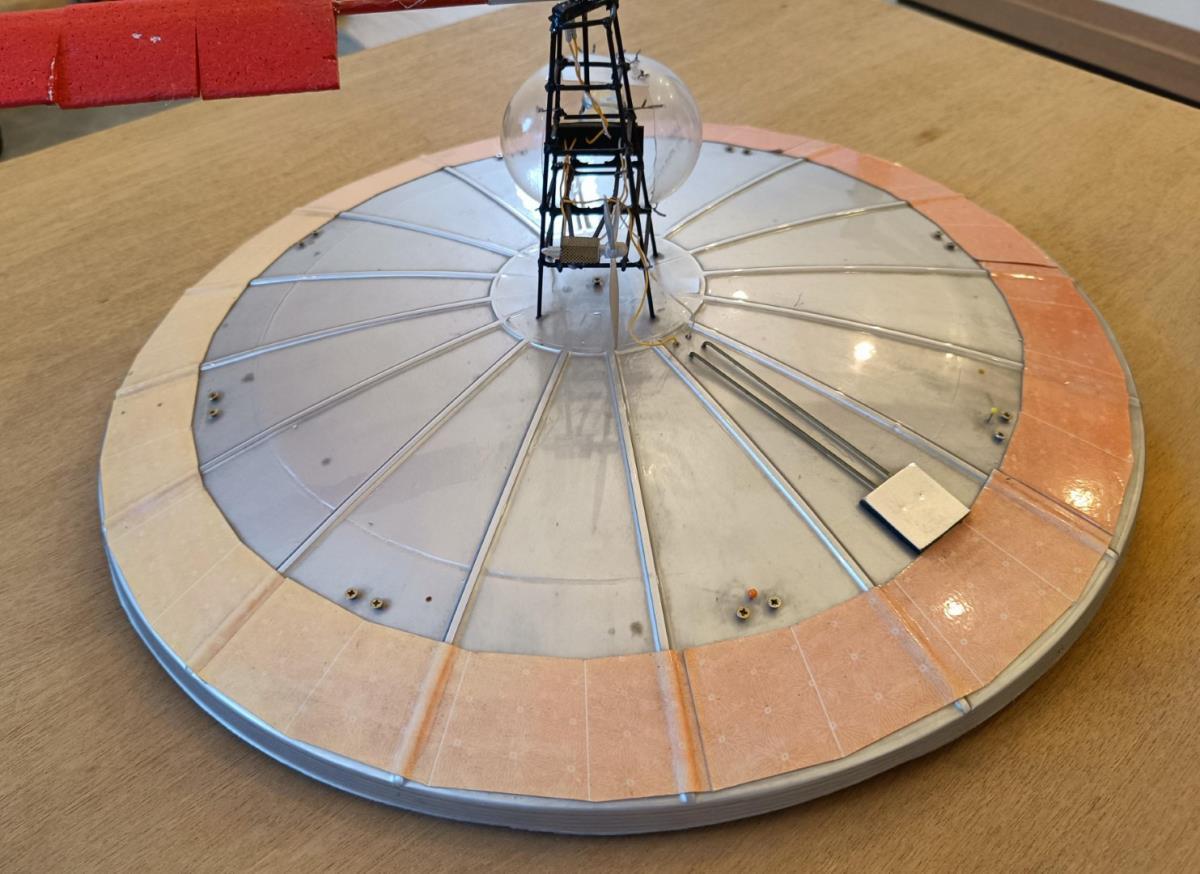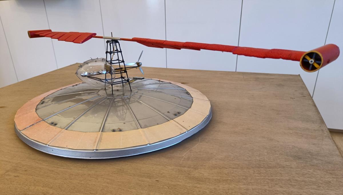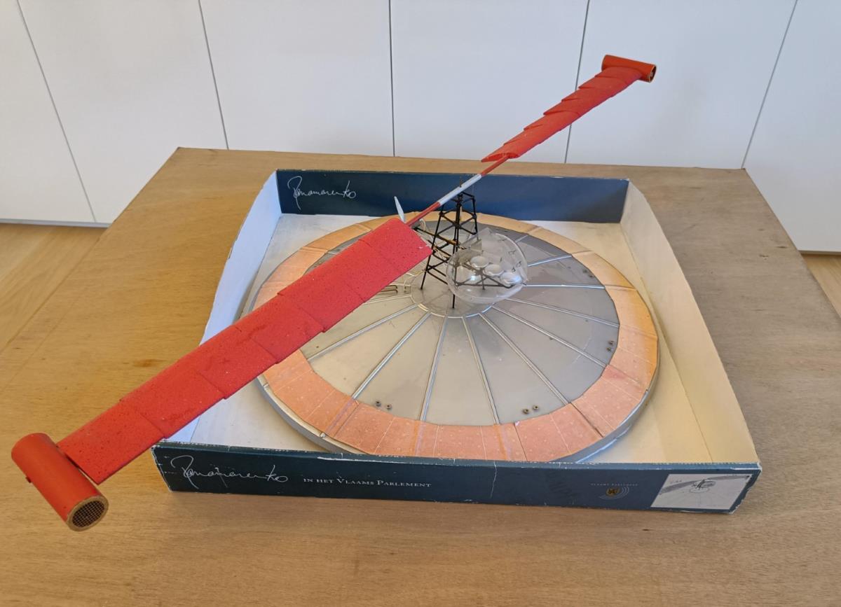 Afmetingen: 105 x 105 x 20 cm - 2004 - Zeer zeldzaam! Sculptuur van Panamarenko. Getiteld vliegend eiland. 284 versies in het blauw, maar niet gekend aantal in rood (slechts enkelen). - Handgesigneerd op plaat.