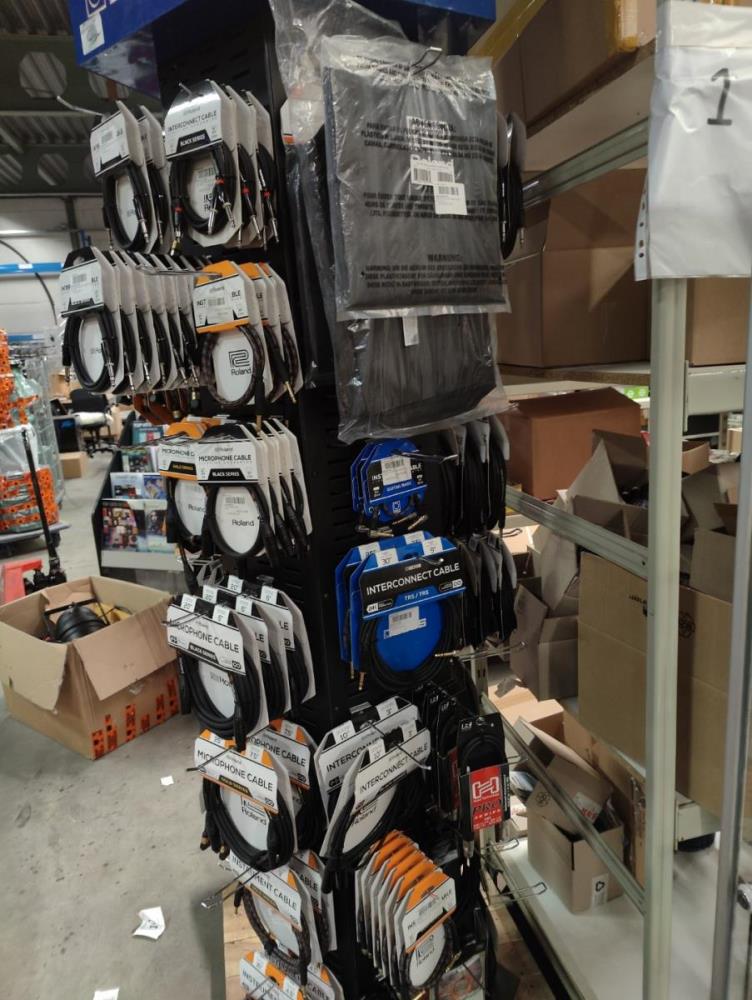 Inhoudende: diverse kabels waaronder: micropphone cable, midi cable, interconnect cable en guitar/bass cables. Circa 115st (Inclsuief stand)