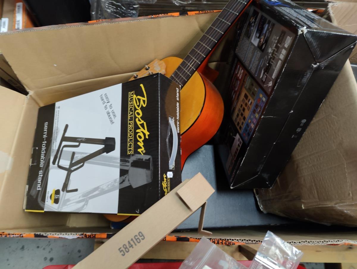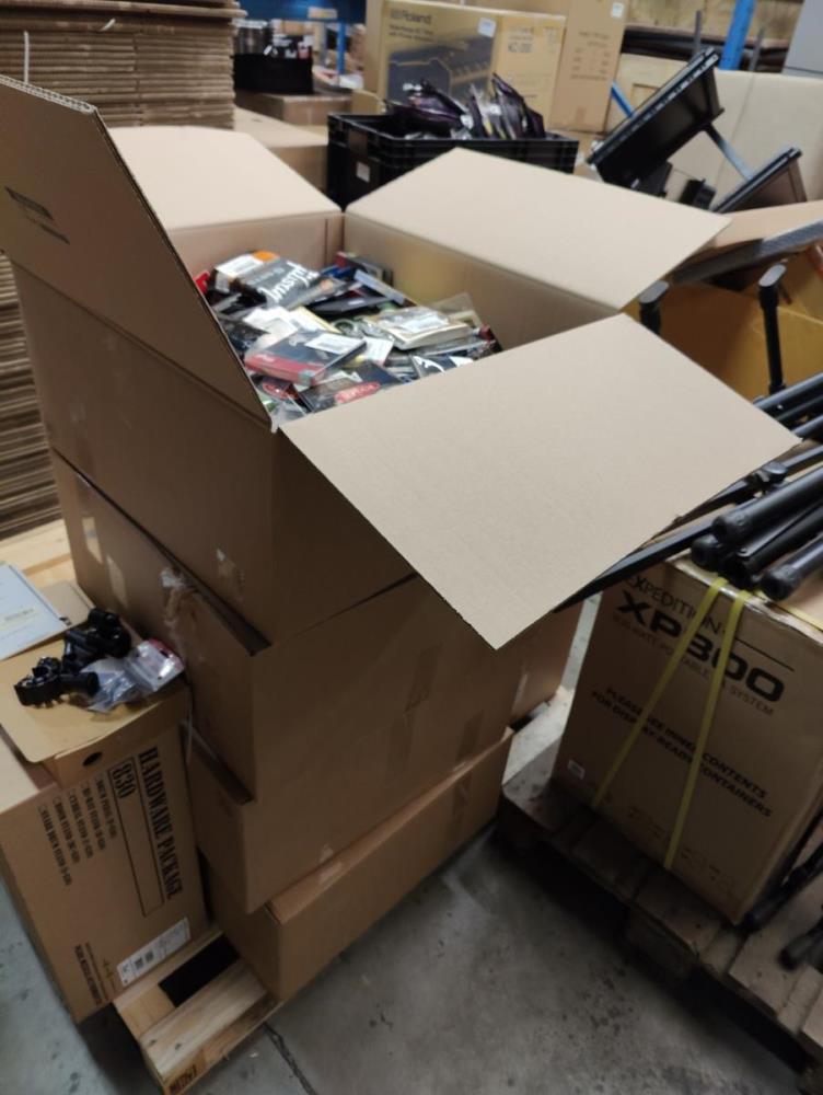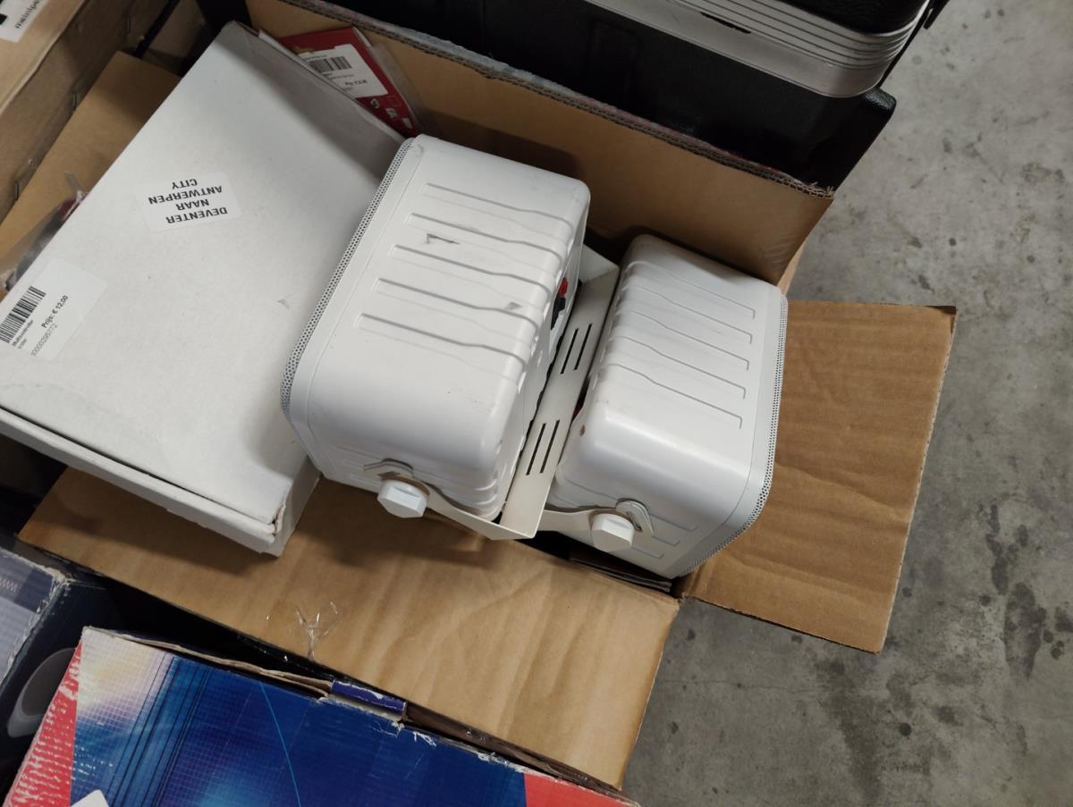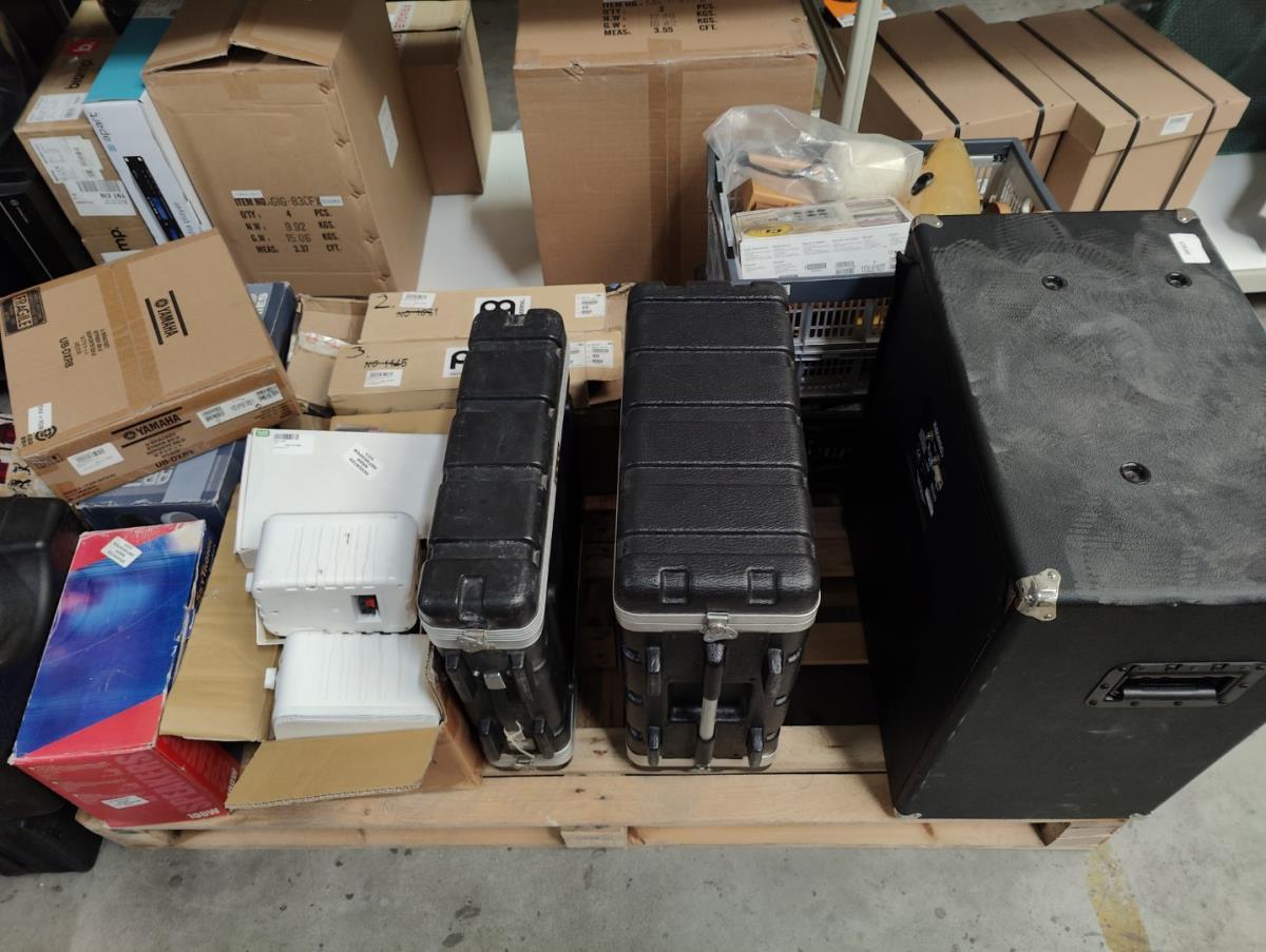 Bestaande uit: Flightcases, speakers, diverse kabels, transport toebehoren, 1 draaitafel STANTON, audio interfaces, gitaar standaardern, diverse gitaar snaren, verlichting, gitaar riemen, clarinet, trompet, incompleet drumstel en andere.