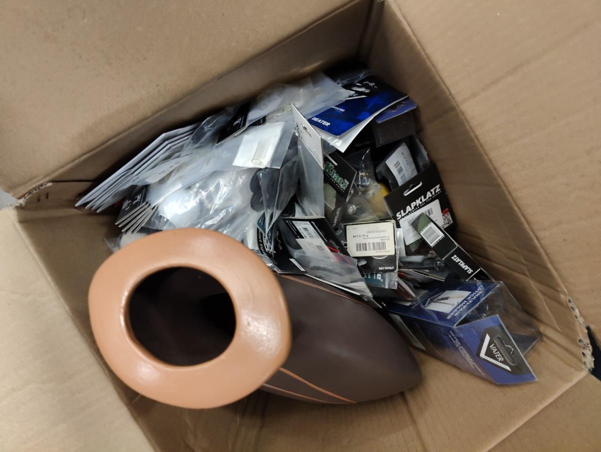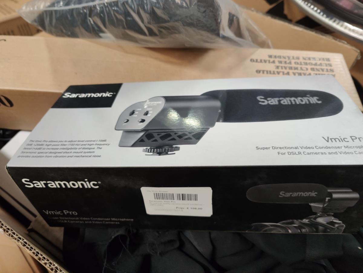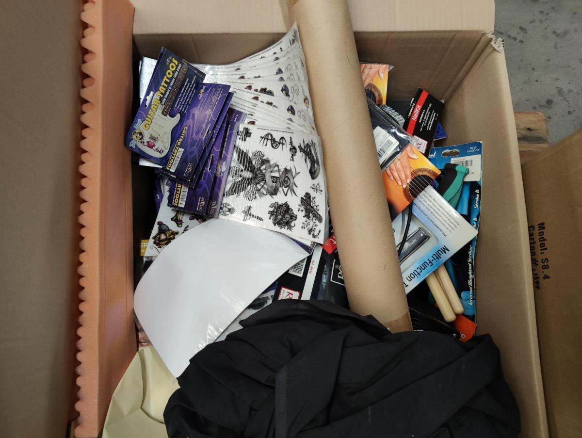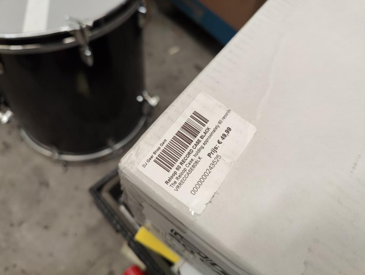 Waaronder: 2 grote flightcases, keyboardstand ROLAND, muziekstoel, kleine drum toebehoren, gitaar stickers, gitaar toebehoren, licht mixer en andere. Liggende op 2 palletten.