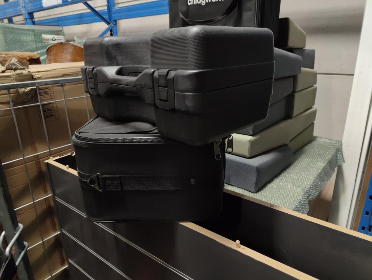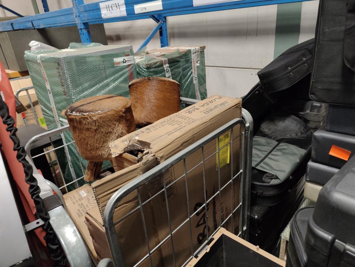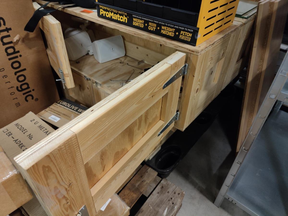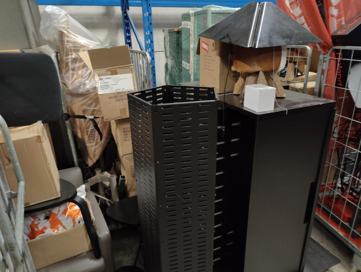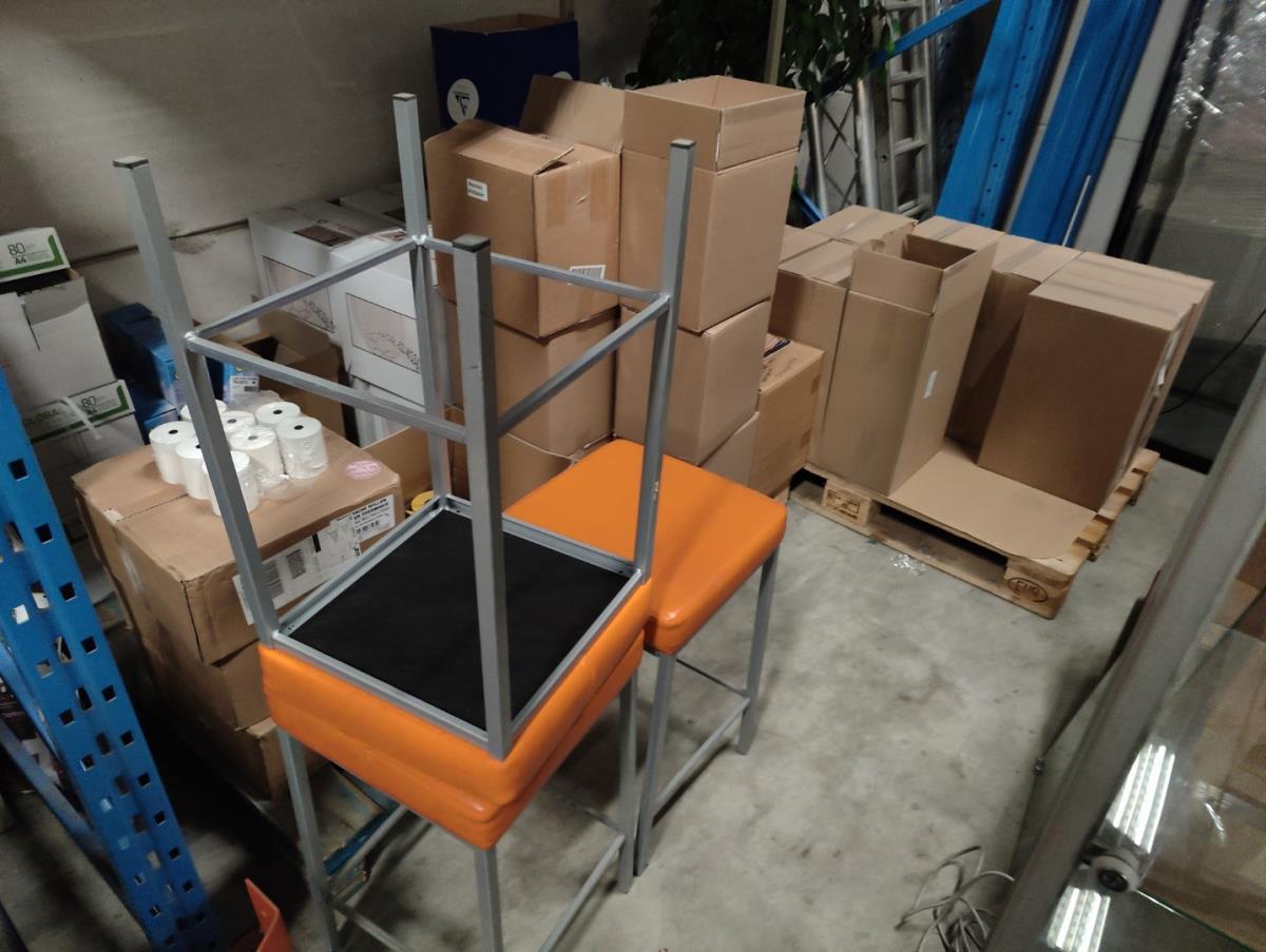 Waaronder: diverse magazijn en kantoor toebehoren, divers meubilair; stoelen, 21 vitrine kasten, winkelrekkenn skai lederen sofa, 1 postkar inhoudende diverse muziek toebehoren, 11 div postkarren, 7 diverse houten opbergkisten met dubelle deur, 2 muziek standen waaronder voor keyboard, 2 metalen opbergrekken, drum tapijten, diverse drum toebehoren, diverse gitaar toebehoren, divers meubilair, 2 terrasverwarmers, partij bistro meubilair, 2 houten kisten, diverse draag beugels HERCULES, diverse bekabeling, diverse presentatie standen. Afgifte volgens aanwijzing. Exclusief trussen.