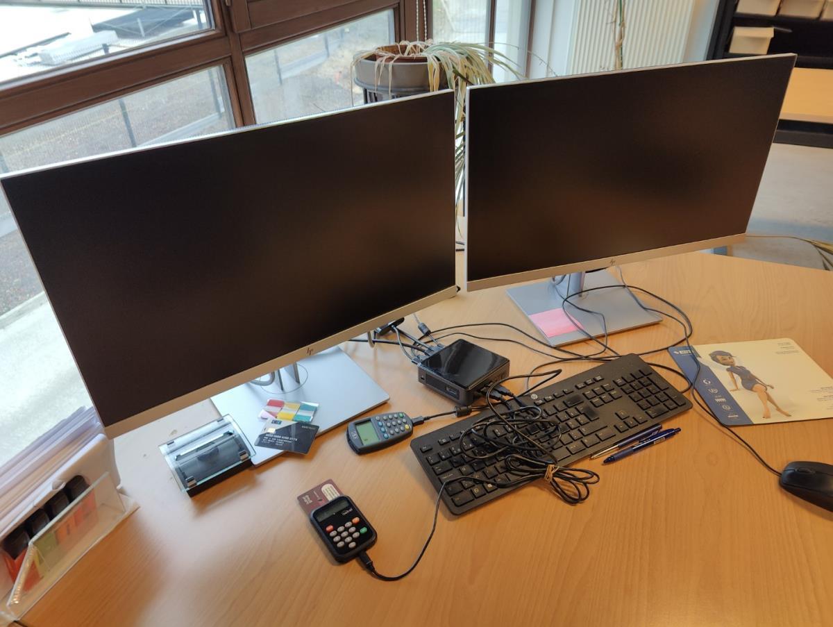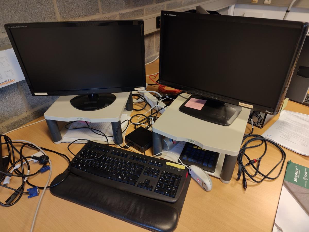 Bestaand uit: 21 diverse monitor waaronder IYAMA en HP, 5 mini pc's waaronder HP, MFC printer BROTHER, 1 MFC printer HP, Laptop LENOVO, Suround systeem PIONEER (5delig) Laptop ACER, 1 luidspreker PIONEER S-DJ50X, 1 desktop HP, 1 MFC printer BROTHER, 1 laserprinter BROTHER, 3 IMACS, 1 laptop TOSHIBA, 2 ticketprinters TOSHIBA, laser printer SAMSUNGS, laser printer XEROX, 3 handscanners METROLOGIC, 1 speaker SONOS. Passwoorden niet gekend afgifte volgens aanwijzing
