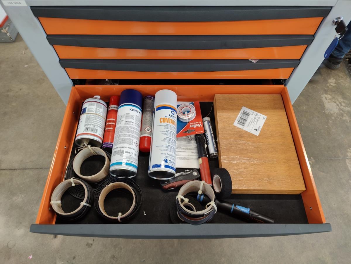 Voorzien van 7 gevulde laden inhoudende gereedschappen toebehoren van elektriciteitswerken.
