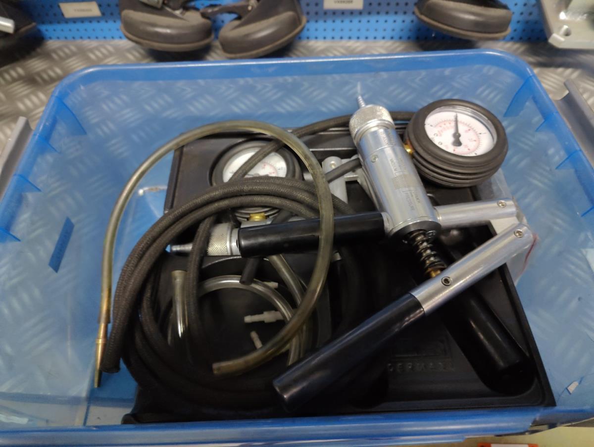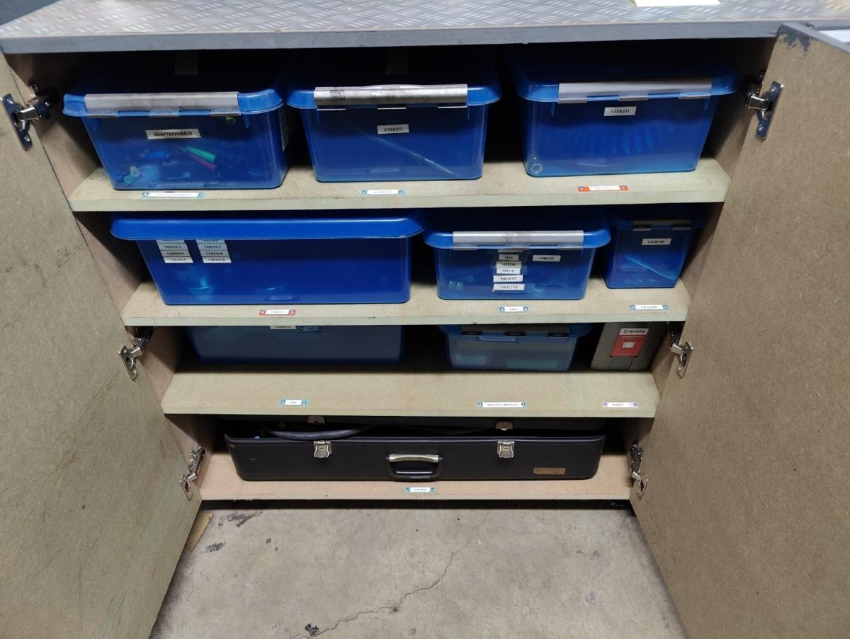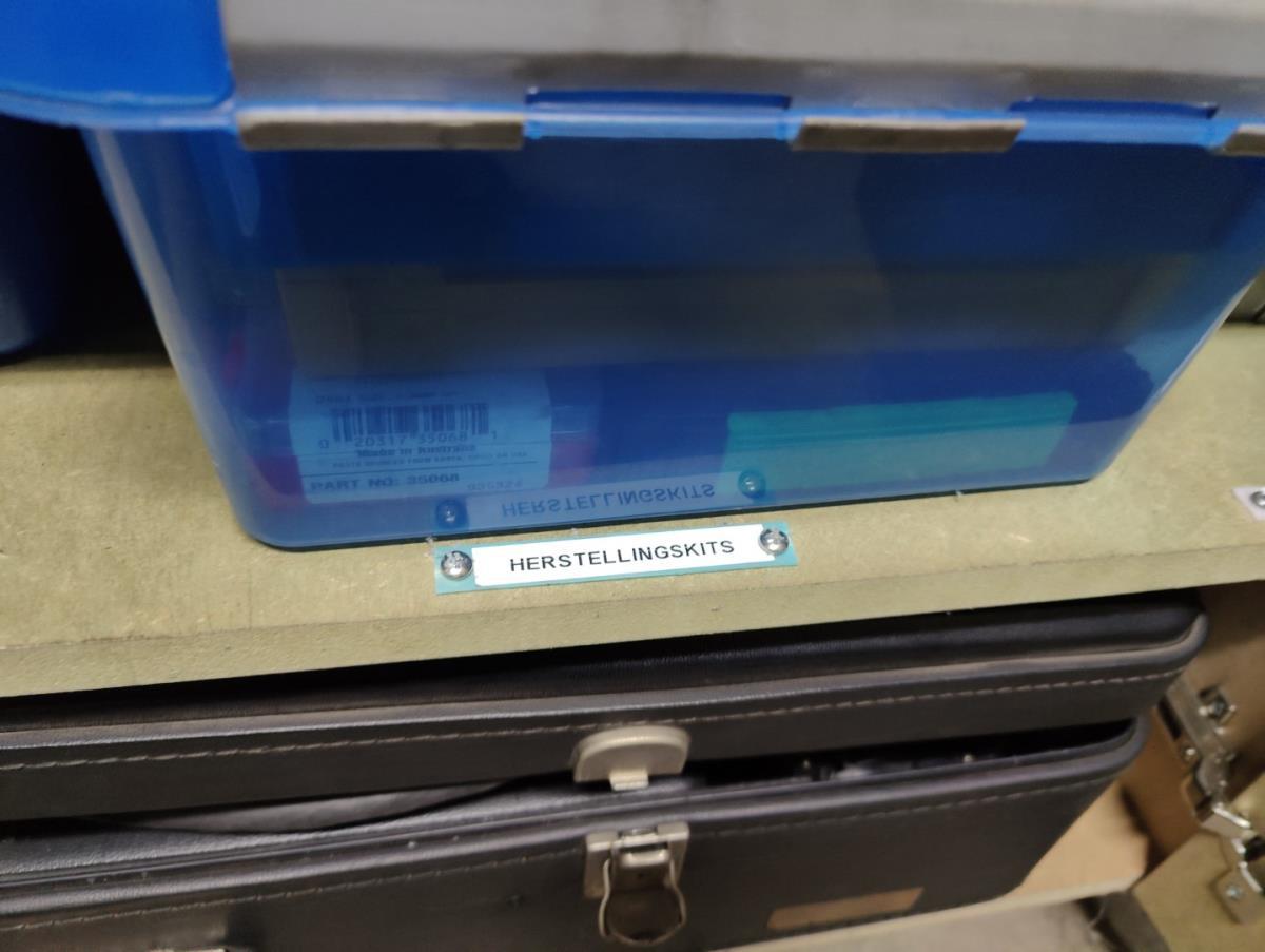waaronder adapters, kabels, herstellingkits, drukmeters, e.a. Liggende in kast 18D