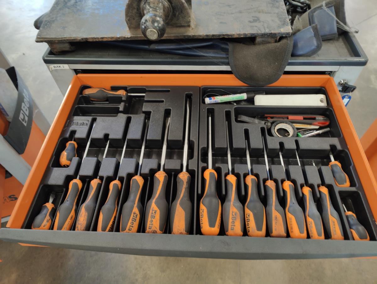 Voorzien van 7 gevulde laden inhoudende diverse handgereedschappen.
