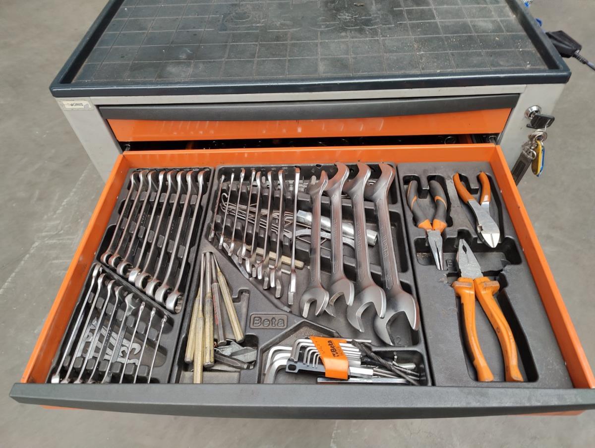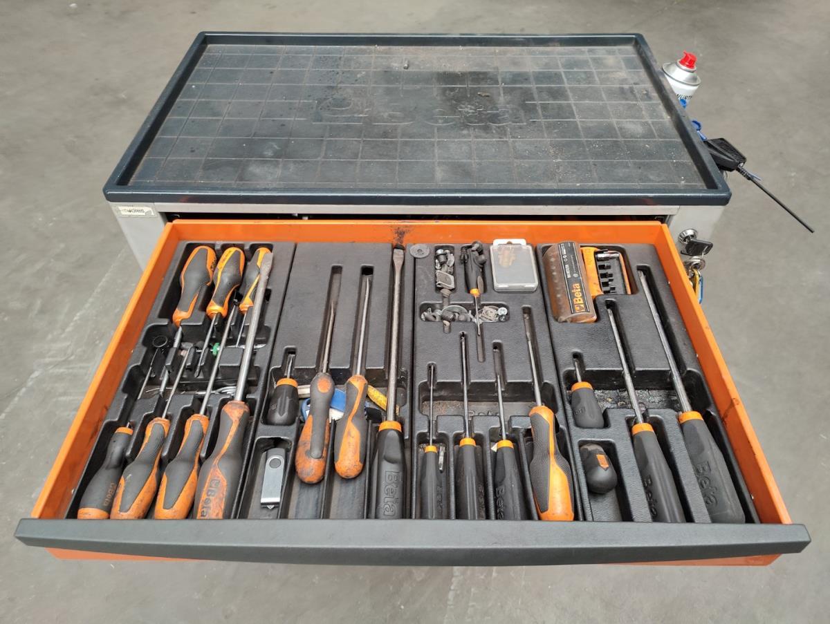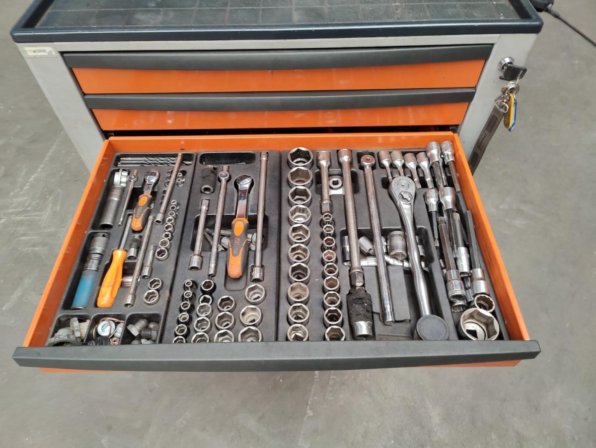 Voorzien van 7 gevulde laden inhoudende diverse handgereedschappen.