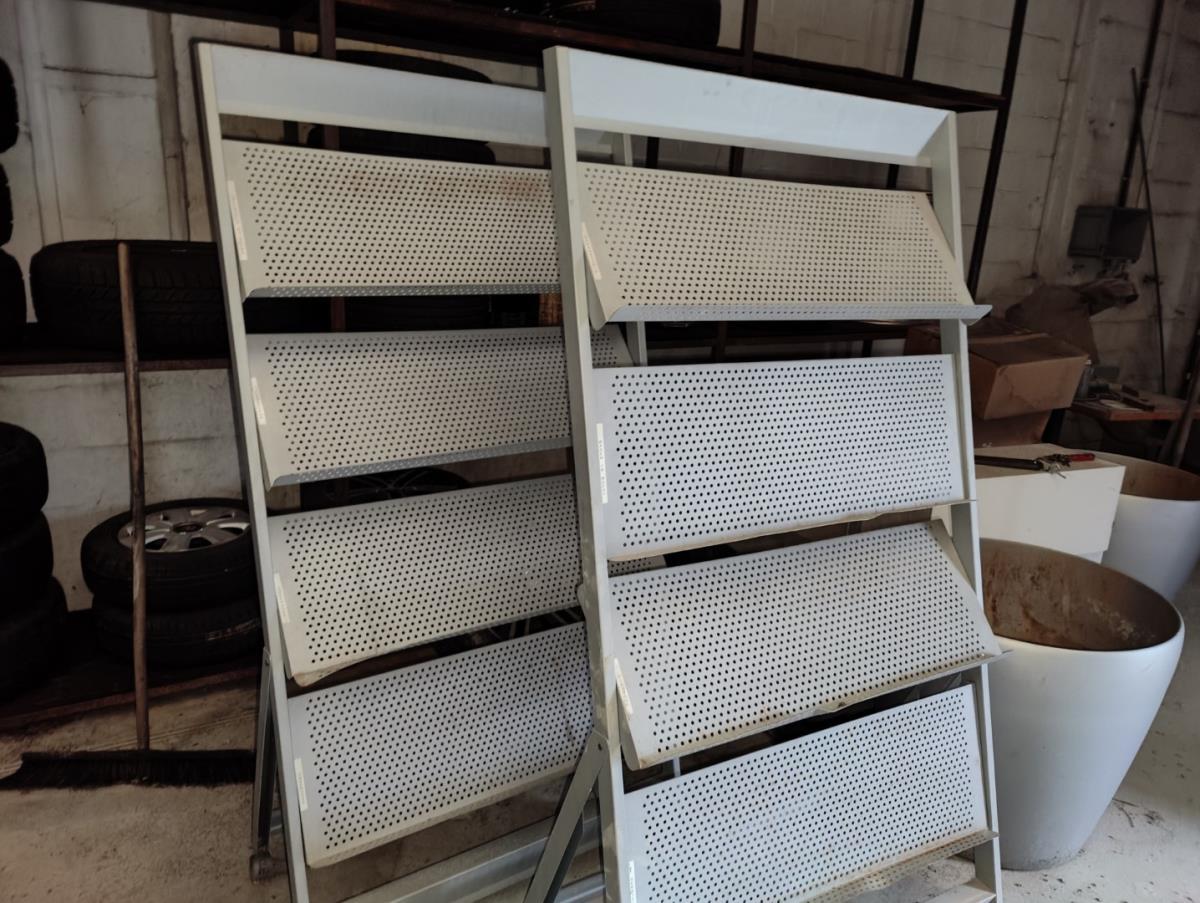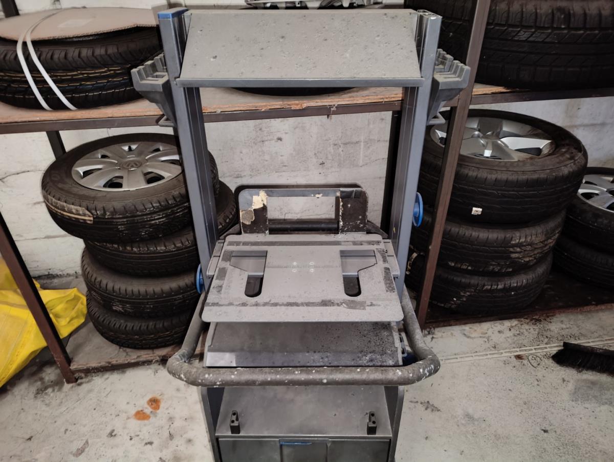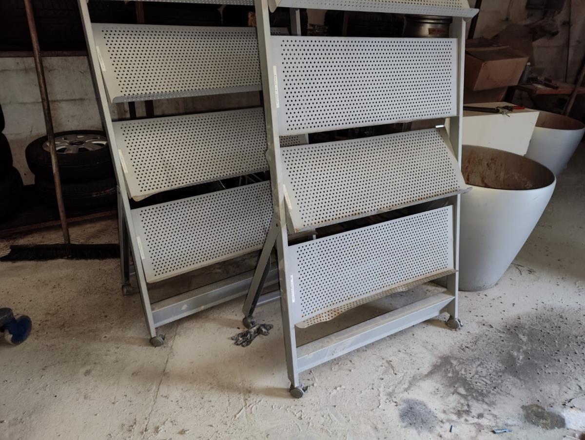 kruiwagen, verrijdbare pomp, dubbele slijpmolen, 2 werkkarren, winkelinrichting.