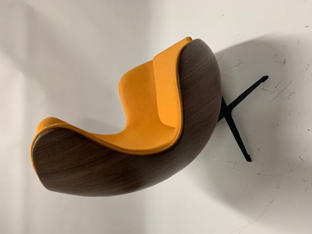 1x Egg Chair geel vintage stof fineer, vintage kasjmier stof, vintage look, kruispoot,draaibaar onderstel, draai en kantelbaar, in verpakking;