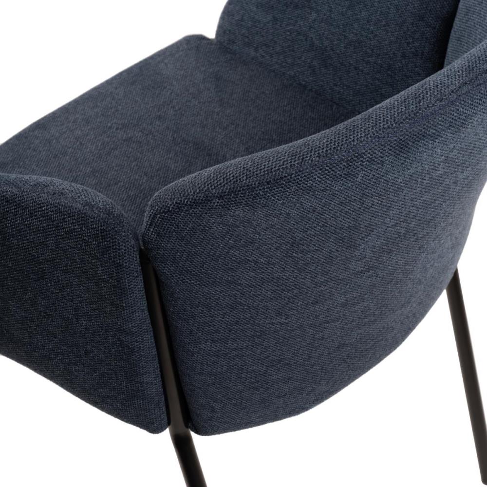 6x Design eetkamerstoelen, model: 8208-35, kleur: blauw, weave stof, stoel met verzwaard en gecoat onderstel.