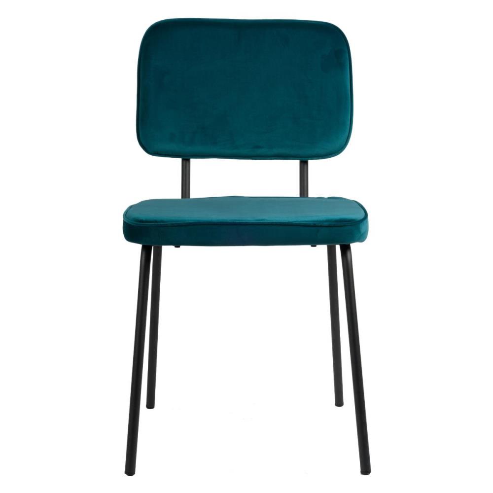 6x grijze eetkamerstoel, model: Joe-16, kleur: petrol groen, velvet stof, zitvlak met extra foam kussen, gecoat en verzwaard onderstel