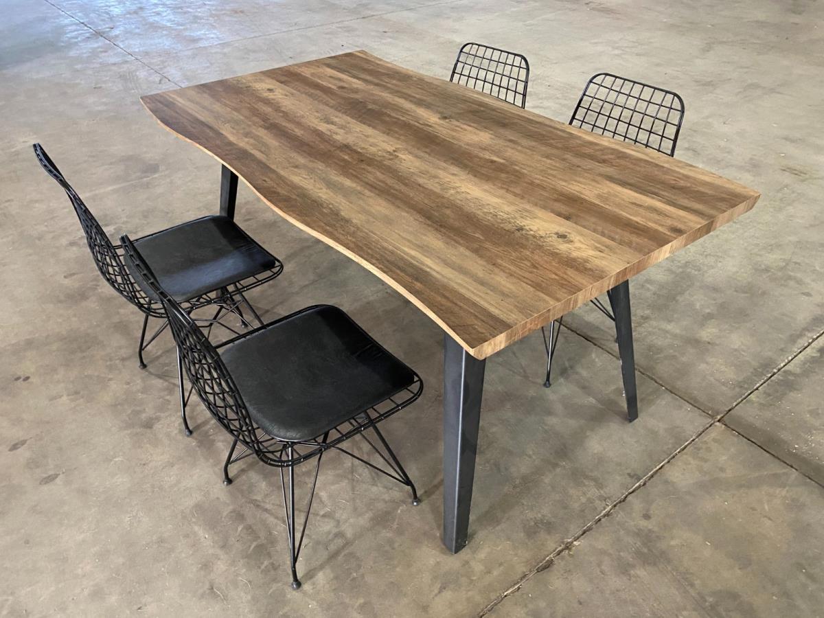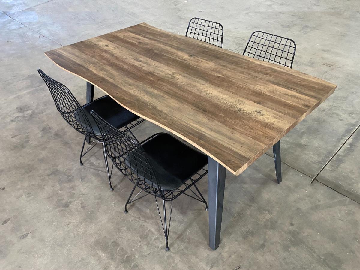 1 x (1) MDF Eettafel - Aantal personen: 6 - Afm L160 x B90 x H75cm - voet in zwart ijzer - DT1417 + (2) stoelen - Kleur: Zwart - Materiel: Metaal structuur en PU leder - inclusief montageschroef - TUR-Zwart