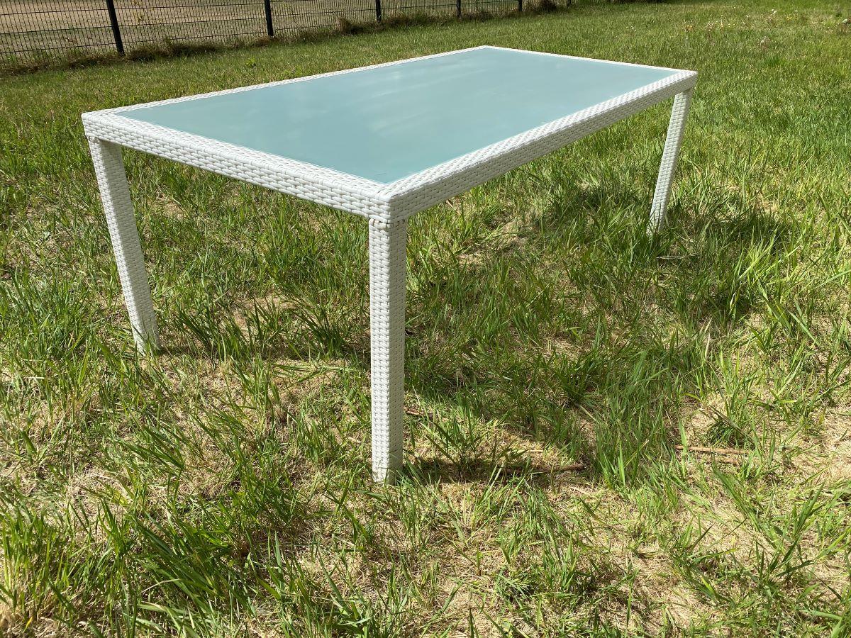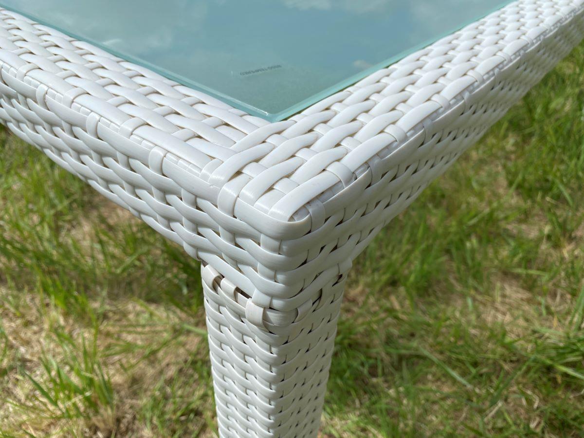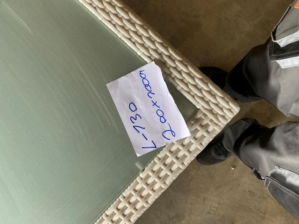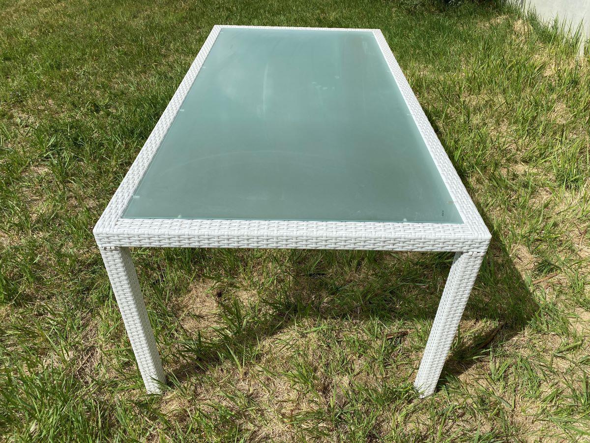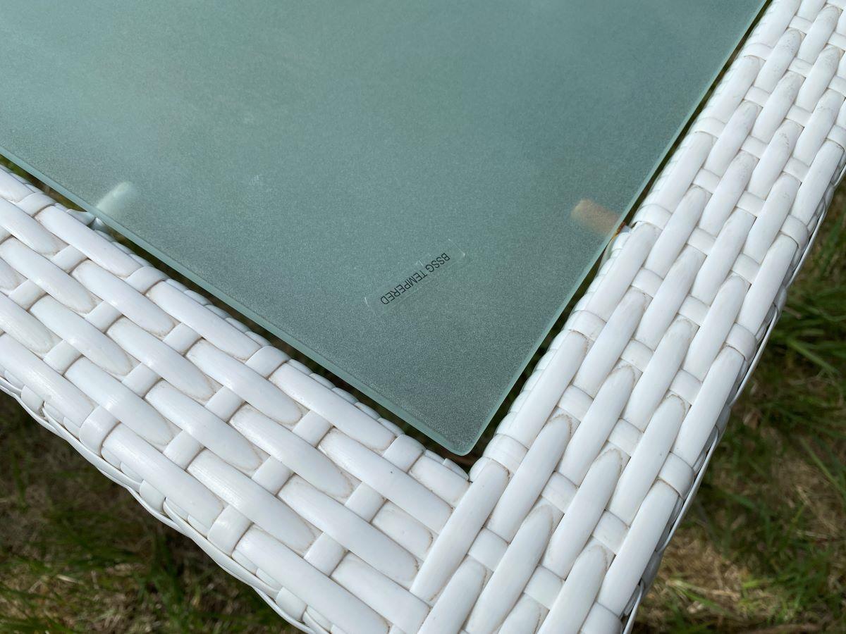 1 x Tafel L-130 Tafel met een wit rotan frame en een glasplaat 200x100cm
