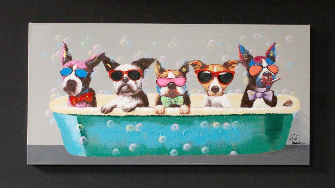 1 x Voor de liefhebbers van puppy schilderij - Materiaal: Acryl||Canvas||Hout - Afm, H70cm x B140cm x D4cm - Muurbevestiging incl, - 32105SCH