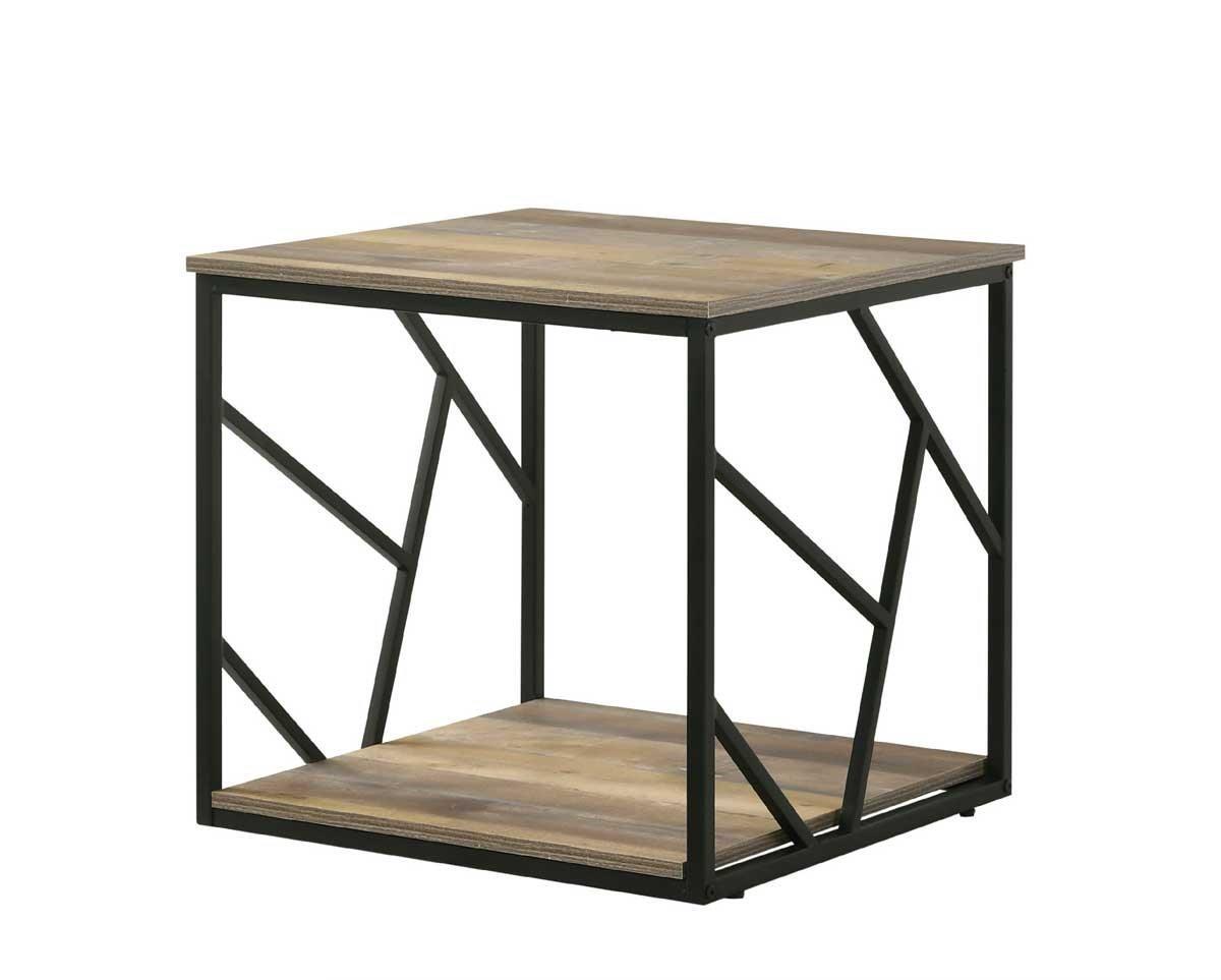 1 x Materiaal tafelblad: Papier decor Kleur tafelblad: Decor imitatie eik Type onderstel: U poten Materiaal onderstel: Metaal Kleur onderstel: Zwart Lengte: 57,2 Breedte: 57,2 Hoogte: 54,5