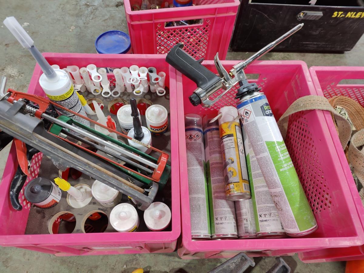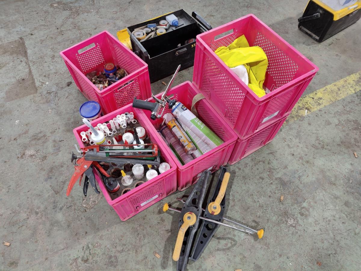 liggende in 5 pvc bakken en 1 werkkoffer
