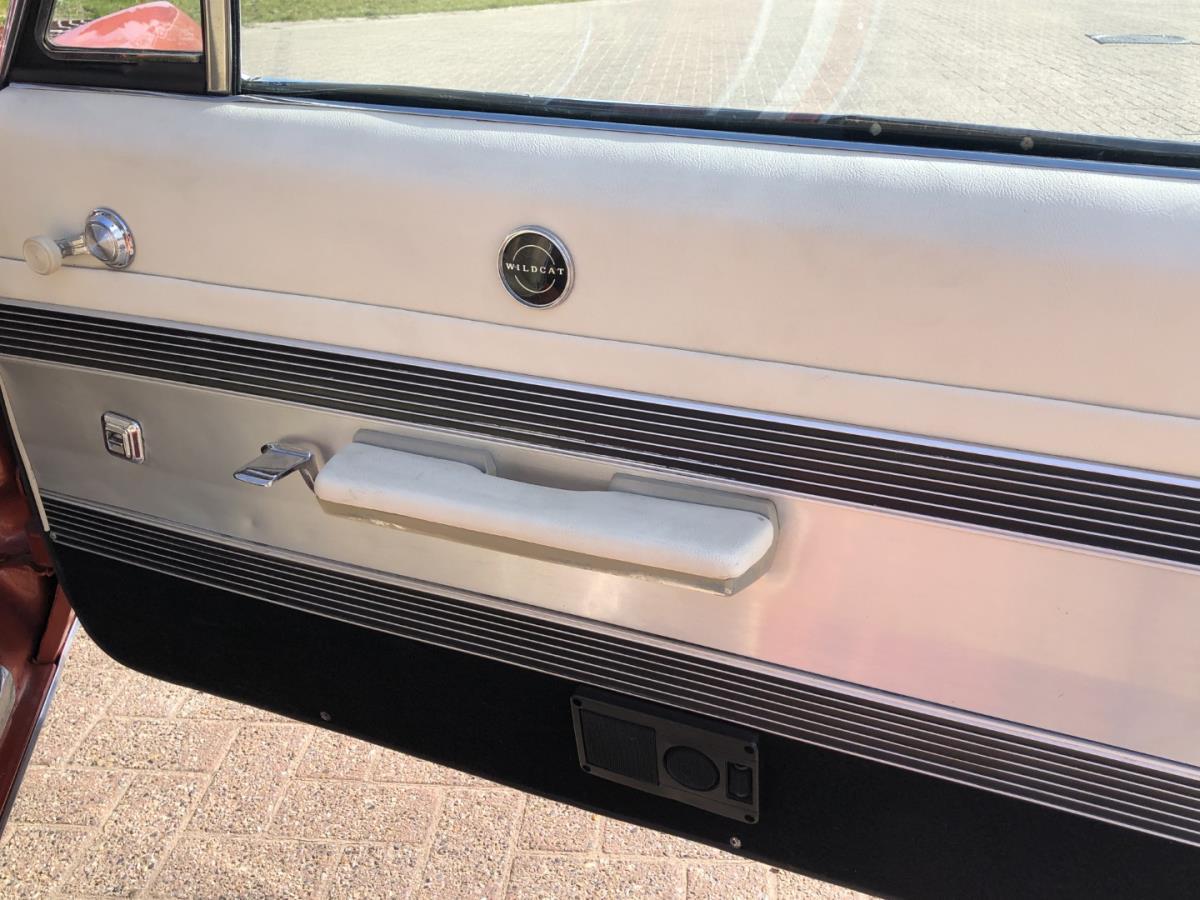 The year 1967 brought a new engine on the Wildcat line (along with the Riviera and Electra 225) - a 430 cubic inch V8 with four cylinder carburettor and 360 hp (268 kW) power with larger valves for better breathing than the previous 401/425. Nailhead design dating from Buick's first V8, in 1953. It had a compression ratio of 10.25:1 and a four-cylinder carburettor with a maximum power output of 5000 rpm and 475 lb⋅ft (644 N⋅m) torque at 3200 rpm - all SAE gross values. The 430 was of relatively short duration because it was only offered up to and including the 1969 model year. We may therefore call this car a real Muscle car with a very special line.