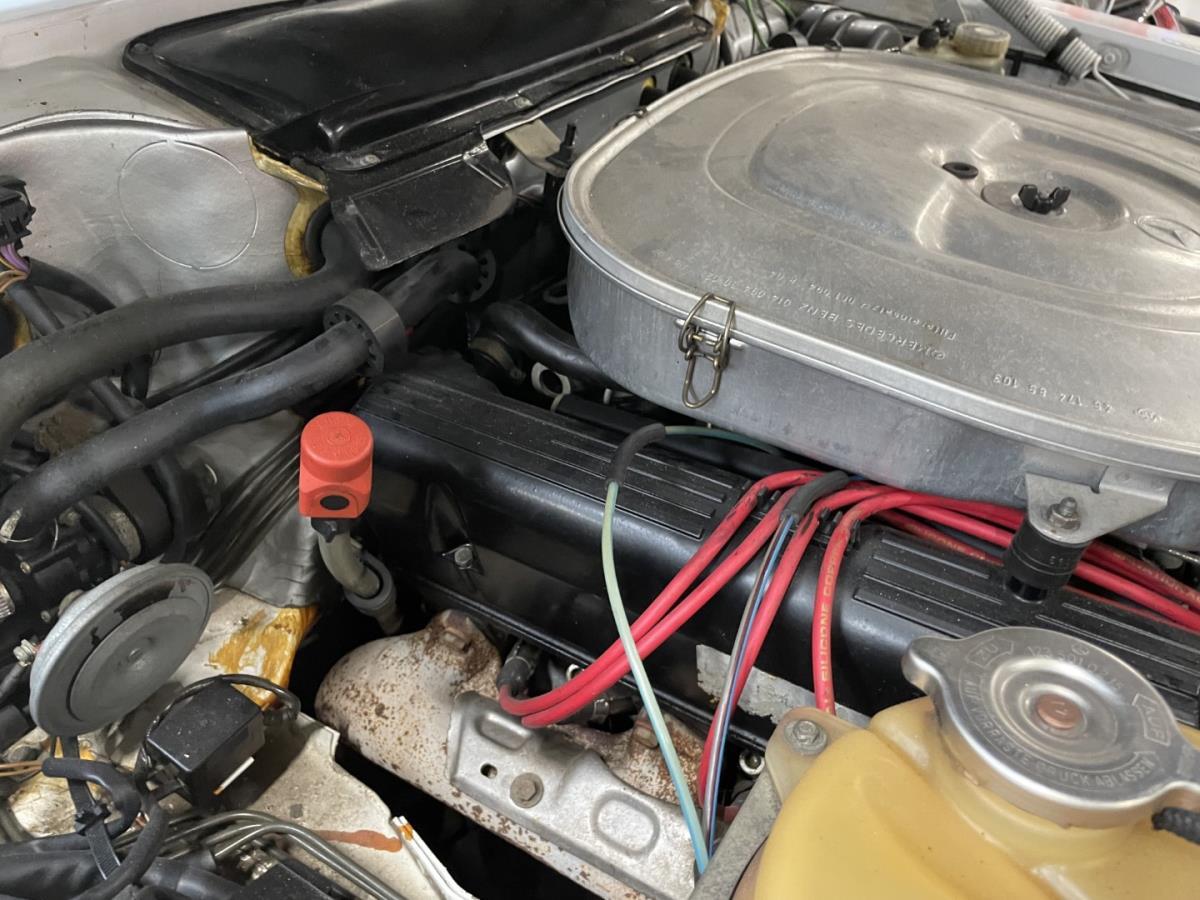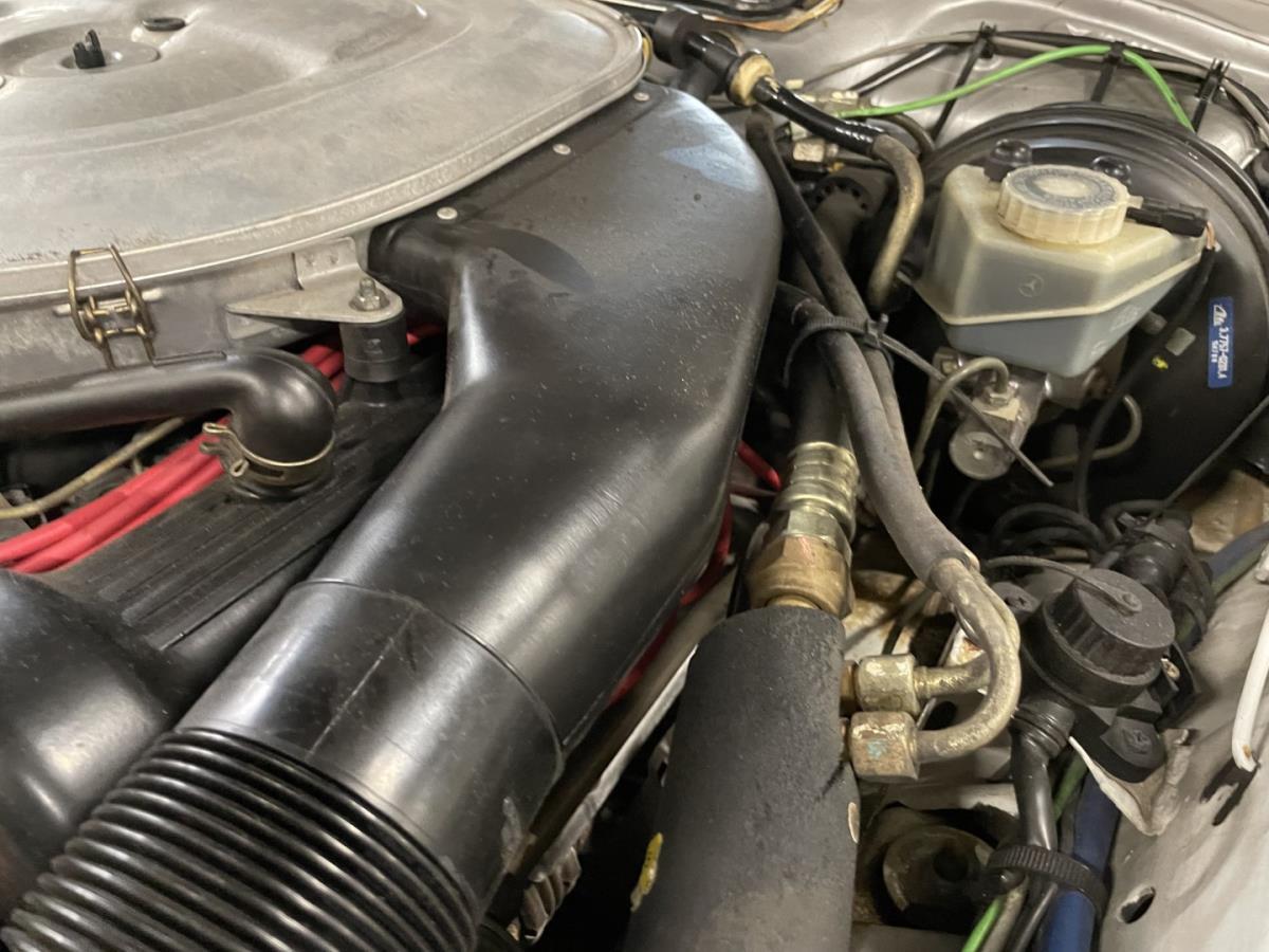 We have fitted this Mercedes with a new dark blue soft top in sonnenland quality. This Mercedes has always been very well maintained in the past and you can tell by looking at this car.