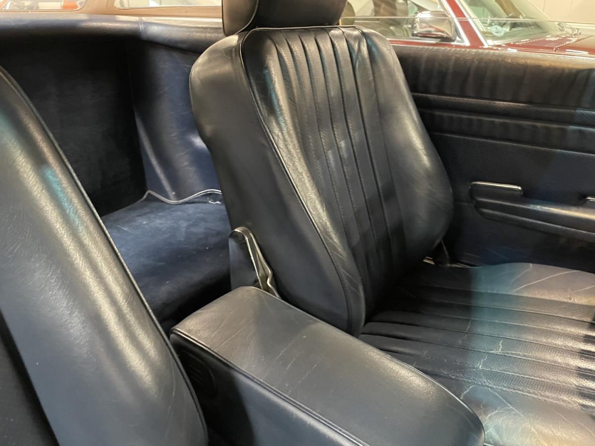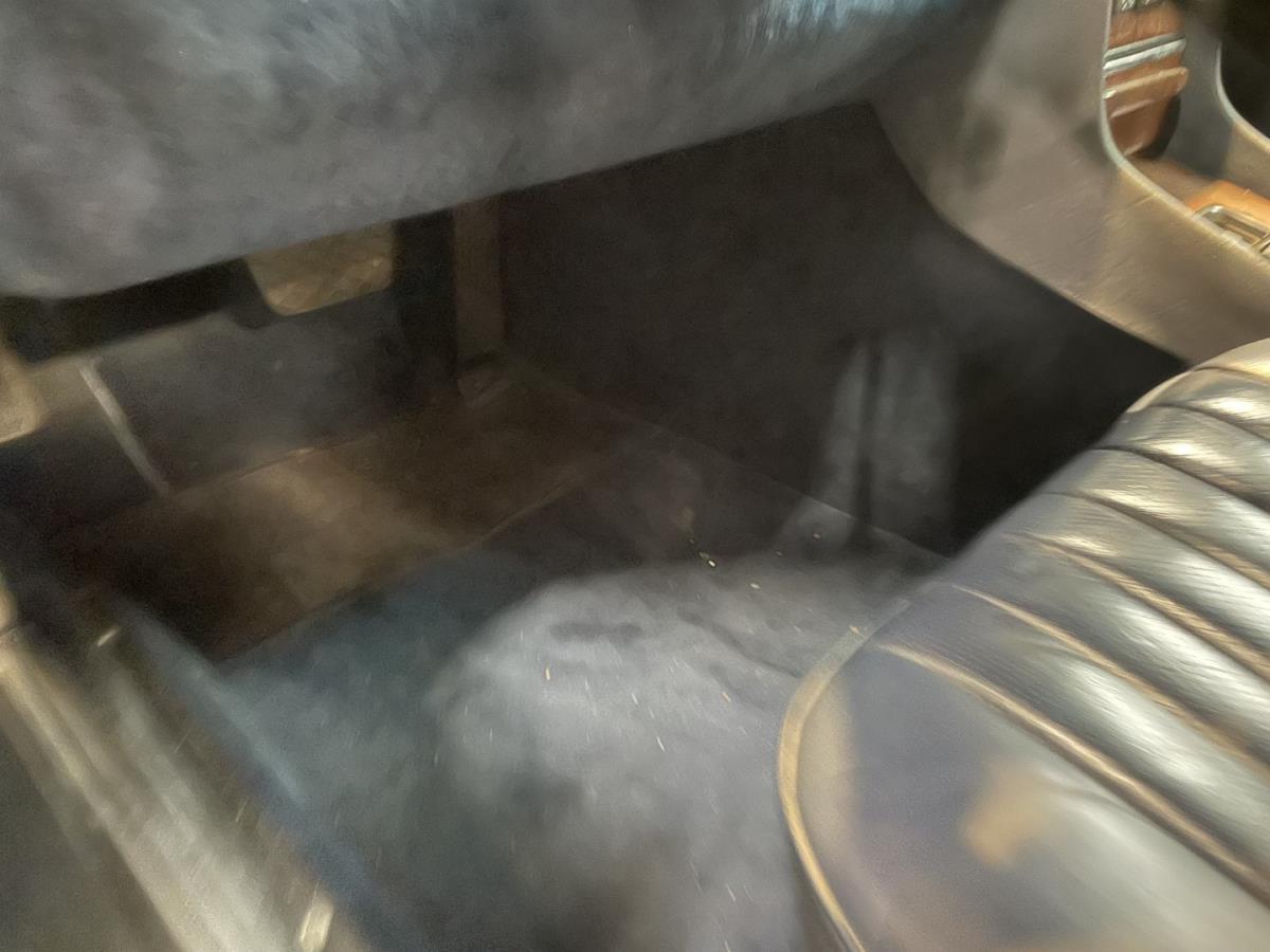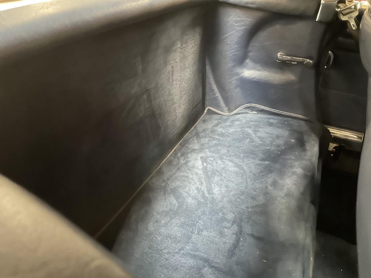 Blauw leder interieur is nog steeds origineel en onbeschadigd evenals de donkerblauwe tapijten in de wagen en de kofferruimte.
