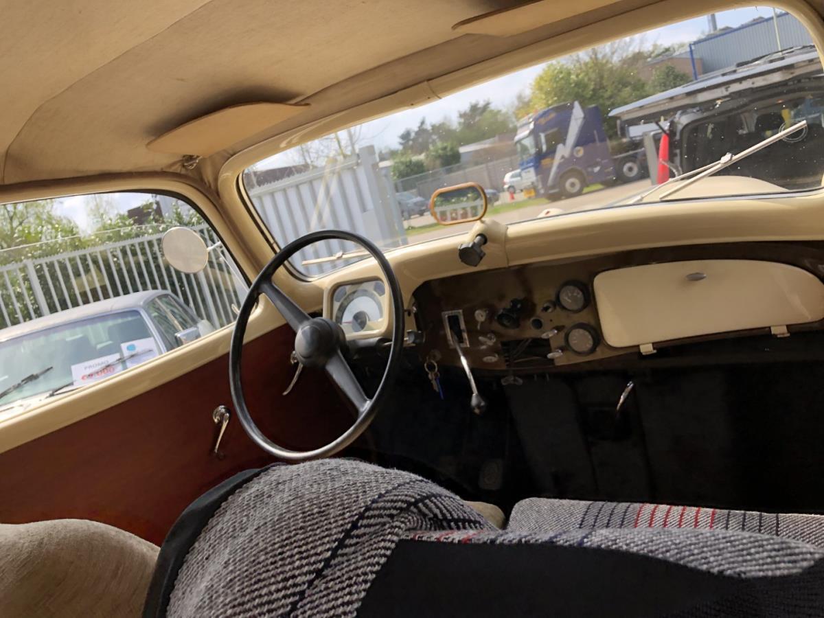 Interieur is bekleed met hoezen maar de originele stoffe zetels zijn ook nog in goede staat.