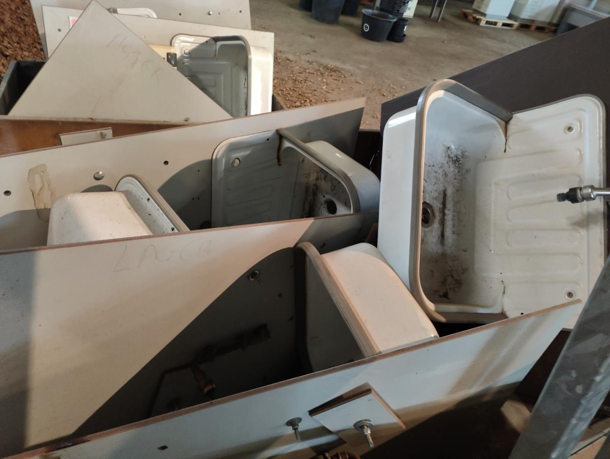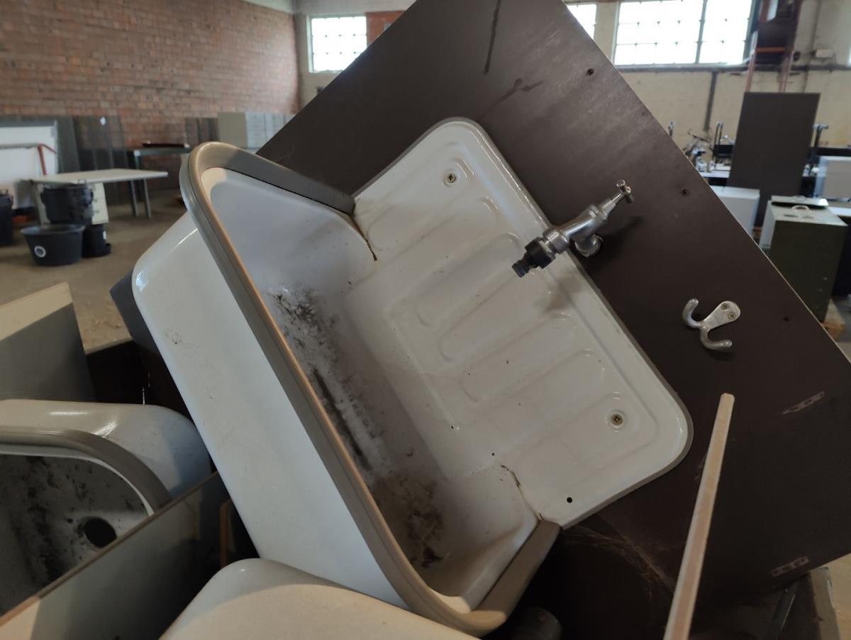 vv spatwand, met kraan en/of zeepdispenser. EXCLUSIEF PALLET OF HOUTEN BAK!