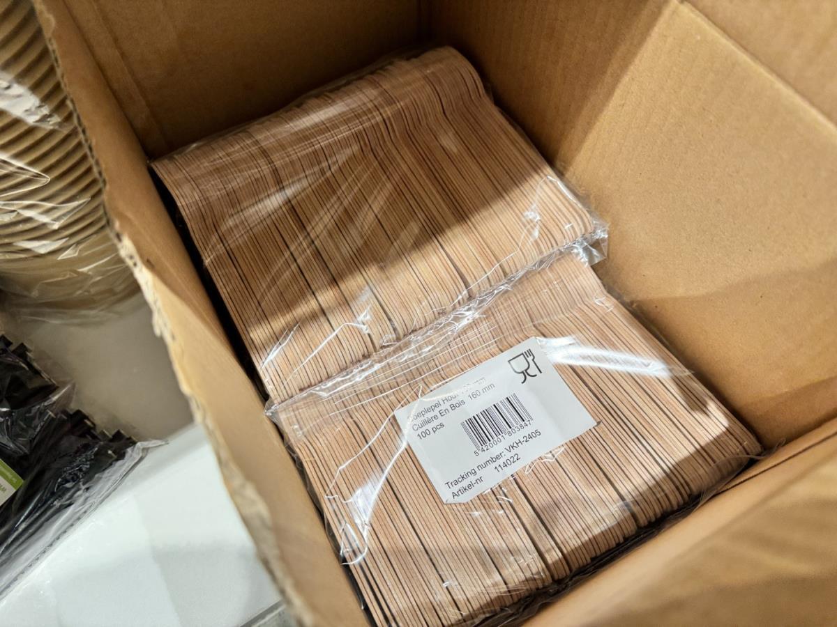 Kavelnummer 11: 1 Div. maaltijdbakken karton - houten lepels