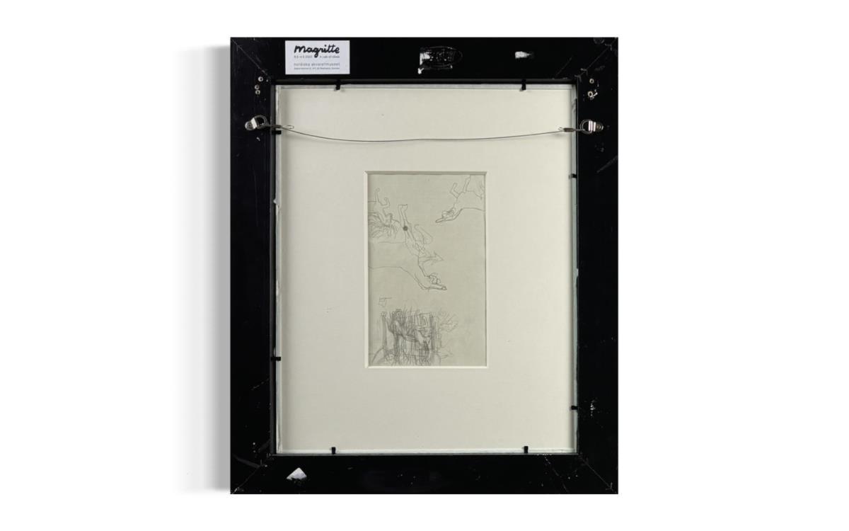 Originele tekening door René Magritte - Hand gesigneerd door René Magritte - Deze tekening was onderdeel van een belangrijke Zweedse tentoonstelling - Labels nog aanwezig op Kader - Met Certificaat 50x43cm