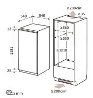 Koelkast,inbouw,nismaat 122 cm,inhoud 201 l,glijbevestiging,omkeerbare deur