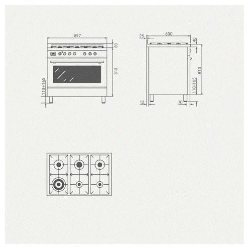 Fornuis,gas,6 branders,gietijzeren roosters,1 oven,antraciet (winkelprijs 3199 euro)