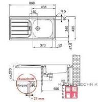 Spoelbak,inbouw,Inox,86 cm