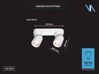 4 x GU10 Opbouwspot Armatuur dubbel cilinder zand wit draaibaar - afdichting IP20 - product kleur zand wit - afm. Ø 60 x 100mm - afm wandhouder 220 x 60 x 25mm - draaibaar 350° en kantelbaar 50° - materiaal aluminum en ijzer - bevestiging inclusief - fitting GU10 - bulb niet inbegrepen - geschikt voor binnen - 2 x bulb invoer - voltage 220-240V - max 40 watt - SKU 00955