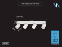2 x GU10 Opbouwspot Armatuur 4 cilinder zand wit draaibaar - afdichting IP20 - product kleur zand wit ring - afm. Ø 60 x 100mm - afm wandhouder 600 x 60 x 25mm - draaibaar 350° en kantelbaar 50° - materiaal aluminum en ijzer - bevestiging inclusief - fitting GU10 - bulb niet inbegrepen - geschikt voor binnen - 4 x bulb invoer - voltage 220-240V - max 40 watt - SKU 00967