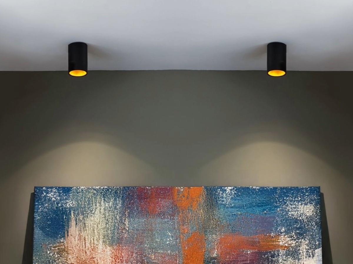6 x GU10 Opbouwspot Armatuur cilinder zand goud en zwart - afdichting IP20 - product kleur zand goud zwart - afm. Ø 90 x 140mm - bevestiging inclusief - materiaal aluminium - fitting GU10 - bulb niet inbegrepen - geschikt voor binnen - een bulb invoer - voltage 220-240V - SKU 0856
