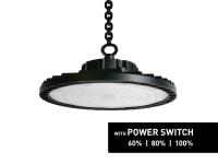 10 x 100 watt PRO SMD LED UFO HIGHBAY 6500K DIMBAAR WATERDICHT - lichtstroom 14000 lumen - lichtkleur daglicht 6500K - LED High Bay is voorzien van een powerswitch waarmee hij in 3 verschillende 60W/80W/100W(60% 80% 100%) lichtsterkte ingesteld kan worden - SMD LED 2835 - waterdicht IP65 - met LiFud LED Driver - met optical lens - stralingshoek 90° - product kleur zwart - Ø 225 x 150mm - materiaal aluminium en PC lens - bevestigingsset niet inclusief - levensduur 50.000 uren - voltage 100-265V - sku 1031