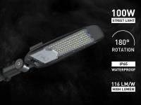 6 x 100 watt 4200K LED Pro Hoog Lumen Straat verlichtingen Waterdicht kantelbaar - lichtstroom 11600 lumen - lichtkleur neutraal wit 4200K - waterdicht IP65 - stralingshoek 130° - met lens - met kantelbare wandbeugel - product kleur zwart - afm. 562 x 215 x 98mm - materiaal aluminium en PC lens - met IC driver - bevestigingsset niet inclusief - levensduur 35.000 uren - voltage 85-265V - Energieklasse D - sku 00938