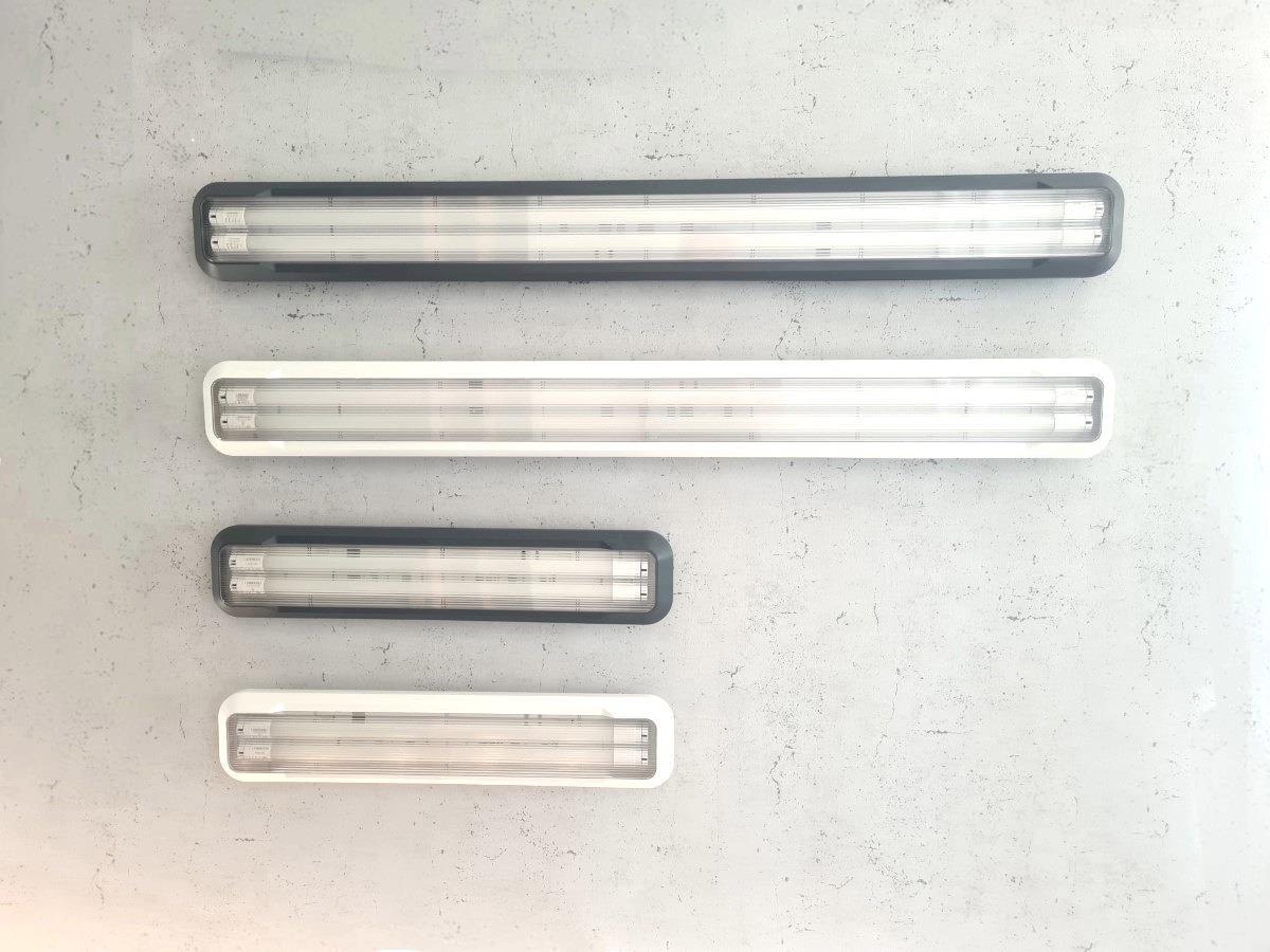 8 x 120cm Pro Design dubbele LED TL T8 armaturen waterdicht donkergrijs met reflector - IP65 waterdicht - product kleur donkergrijs - afm. 1289 x 138 x 84mm - materiaal PC & ijzer reflector - bevestigingsset inclusief - twee T8 Tube invoer - LED TL Tube niet inbegrepen - voltage 220-240V - een zijde L N aansluiting - max 36 watt - Attentie verkeerd informatie over product kleur op de dozen - compatibel met 120cm TL buizen - SKU 00653