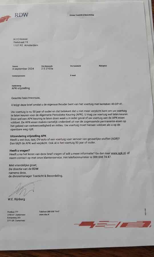 keuringvrij voor nederland geen apk meer nodig na 50 jaar