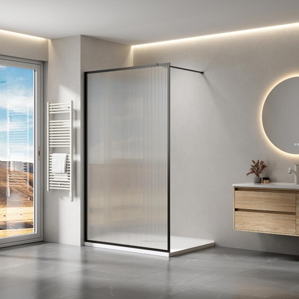 | 27 : 1 x 120x200 BV Inloopdouche met mat zwart frame en geribbeld glas |