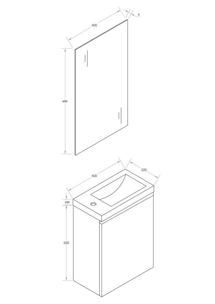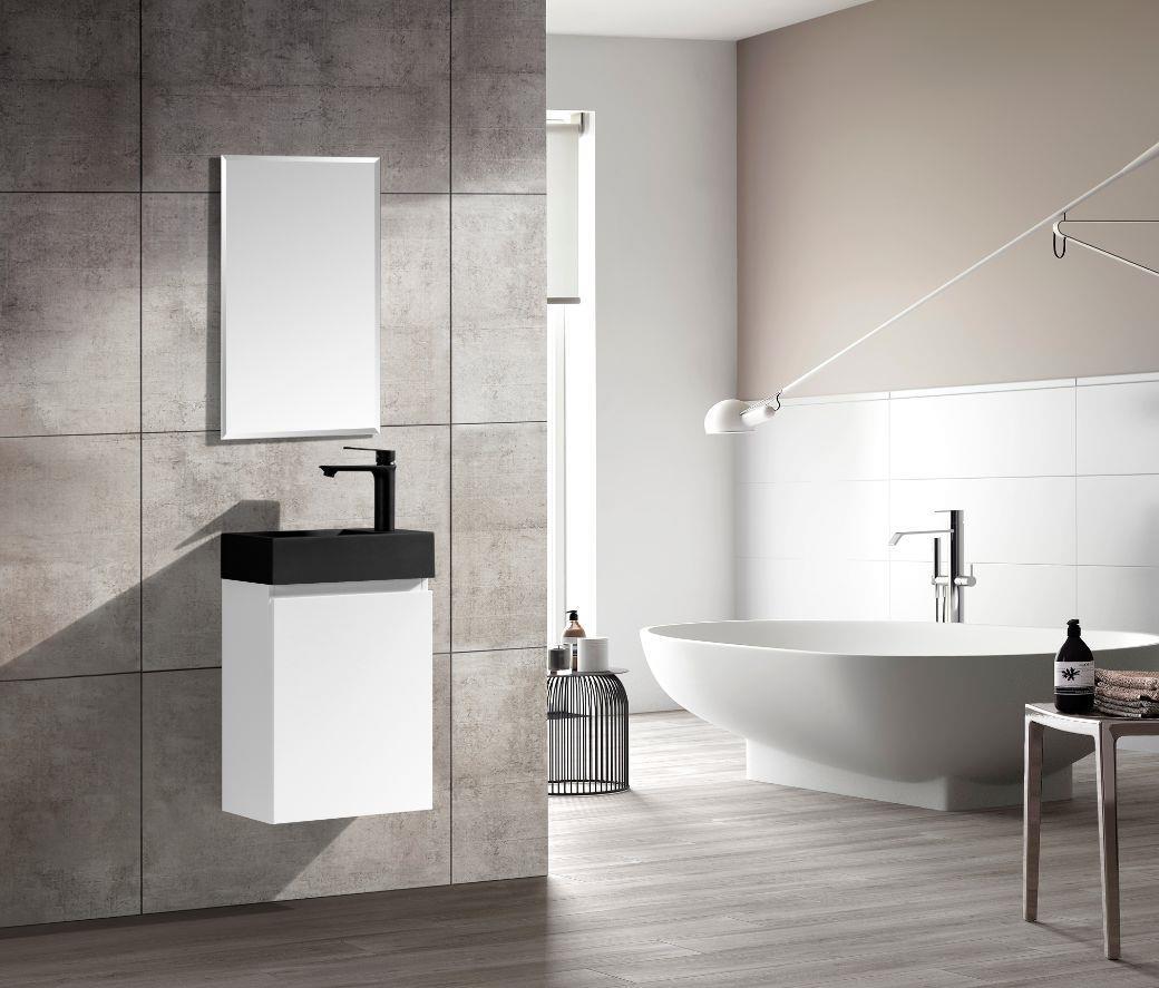 1 x 40cm Toiletmeubel COMO40-03B - Kleur: mat wit - Met mat zwart wastafel - Afm. B40xH60xD22CM - Deur voorzien van Softclose systeem - Spiegel 40x70cm- kraan, krepin en sifon niet inbegrepen -