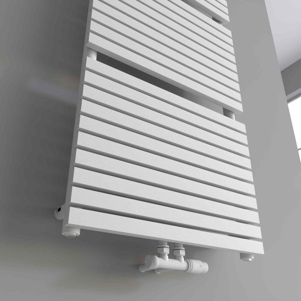 1 x Lavinno Verezzo design handdoekradiator met middenaansluiting - Afm. H1800 x B600 mm - Kleur mat wit - 1887 Watt - Incl. muurbevestiging - Design kraanset niet inbegrepen
