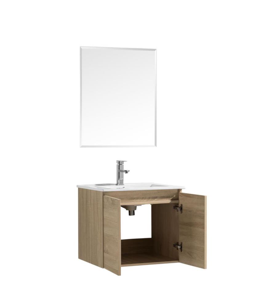 1 x 60cm badkamermeubelset MDF - BERN 600-01 - Kleur: White EIK - Afm. B60xH50xD46CM - Ceramic wastel - Deur voorzien van Softclose systeem - Spiegel 60x60cm - kraan, krepin en sifon niet inbegrepen