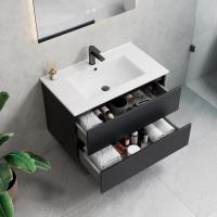 1 x 80cm Design badkamermeubelset Melamine ROMA 80-06 - Kleur: Zwart Eik - Afm. B80xH50xD46CM -Mineraalmarmer wastel - 2 Lades met softclose systeem - LED Spiegel 80x70cm (Verschillende kleurtemperaturen 3000K Warm-wit, 4000K Neutraal-wit, 6500K Koud-wit) + Anti Condens + Alle 3 de kleuren zijn dimbaar, zo kunt u het licht eenvoudig dimmen of feller maken tot het gewenste effect - kraan, krepin sifon en kolomkast niet inbegrepen -