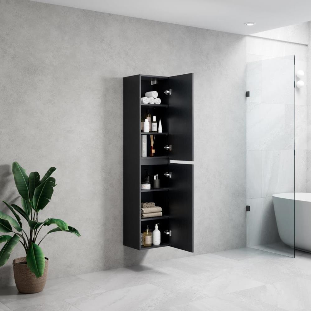 1 x 160cm Design Kolomkast Badkamermeubel - Kleur: Zwart Eik - Afm. B40xD30xH160cm - de Kolomkast bevat 2 deuren en is uitgevoerd met een soft close systeem - bevestigingsbeugels incl. - ROMA 160-06