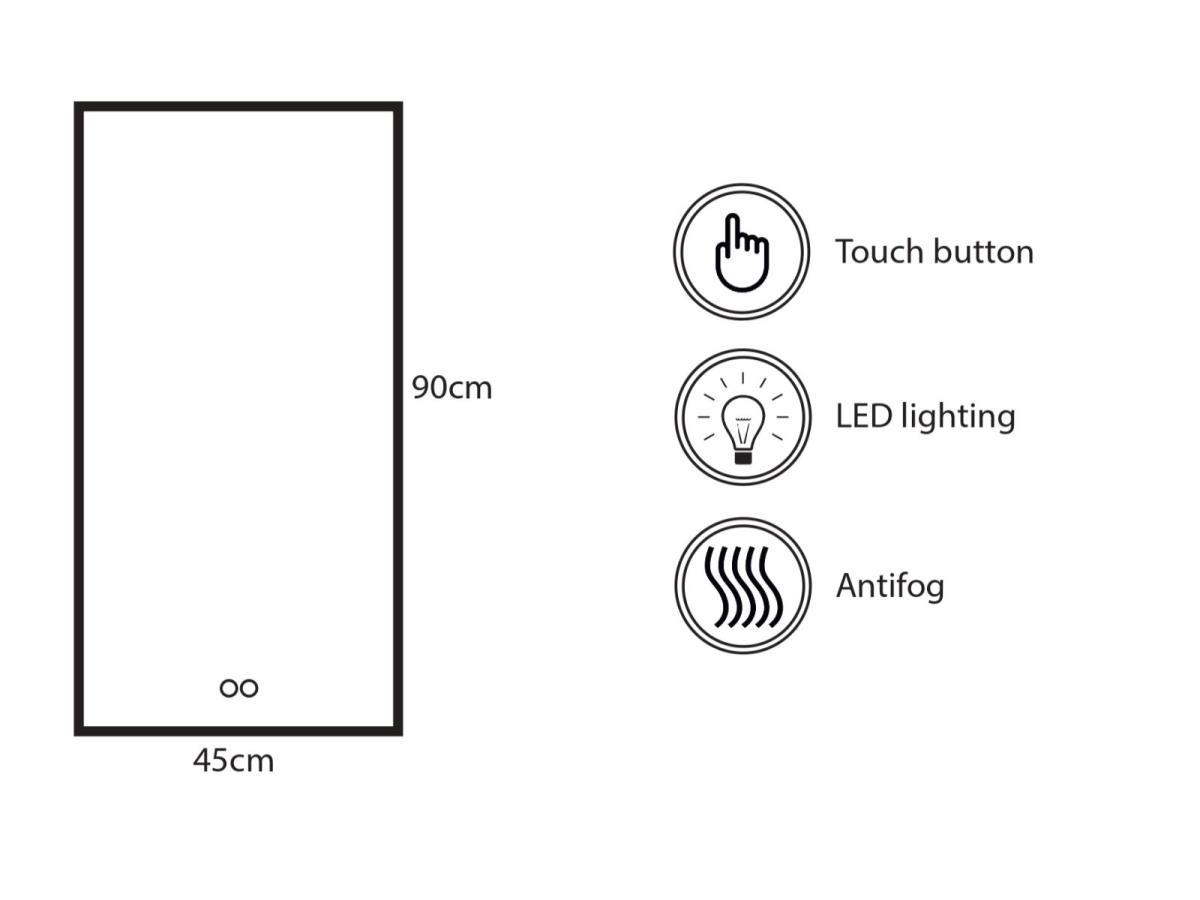 1 x Badkamerspiegel DZ4590-1 - LED Verlichting - Met zwart frame - B45xH90cm - Glas dikte 5mm - Touch bediening voorzijde - Dimbaar - Anti condens - Aansluitwaarde 230volt - IP44-waarde - Inclusief montagemateriaal - Net gewicht: 7kg
