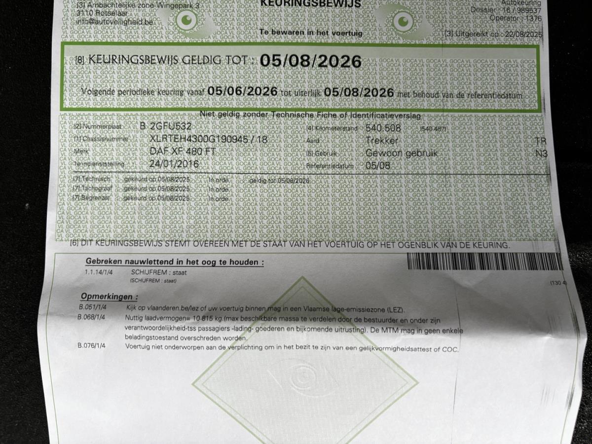| 9 : DAF XF 480 FT, 2016 |