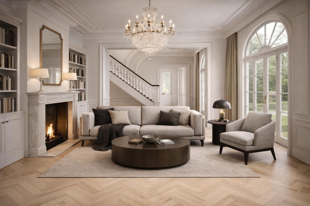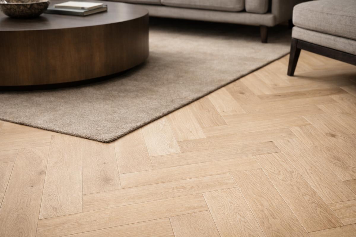 Vinyl SPC Rigid Pro Herringbone Amande Select 640x128x7mm, 125.86m2, easy click systeem, 2 pallets 80x120cm, 1300kg