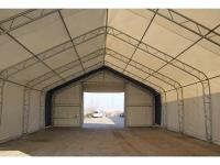 Kleur wit; PVC-afdekking 420 gram; Single truss systeem gegalvaniseerd; ongebruikt; arch space 3.05M; in metalen kist; hoogte deur 3.60m; Breedte deur 3.60m; transport kist