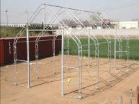 PVC-afdekking 420 gram; touw om beide kanten op te trekken; hoogte poort 3.66M; Breedte poort 3.66M; double truss systeem gegalvaniseerd; arch space 3.05M; ongebruikt; in metalen kist;